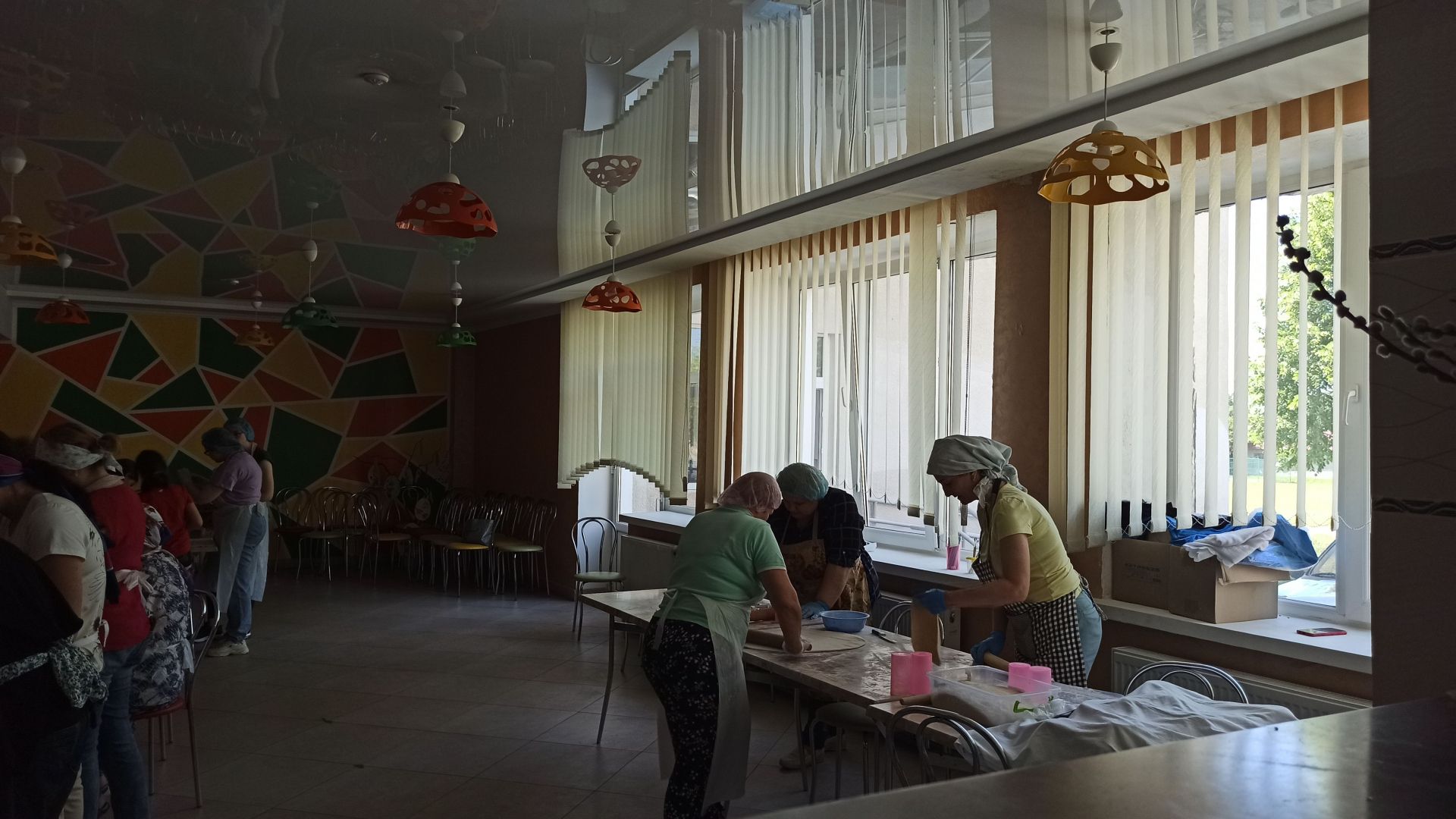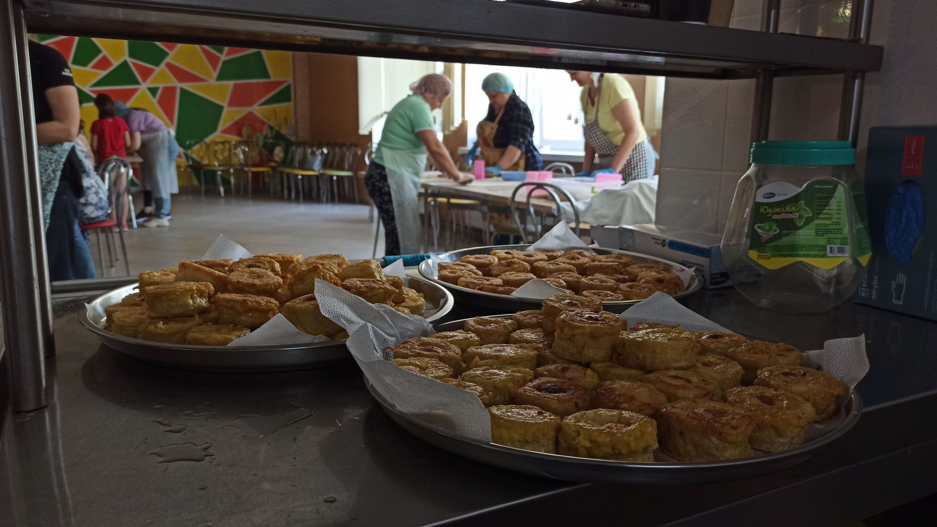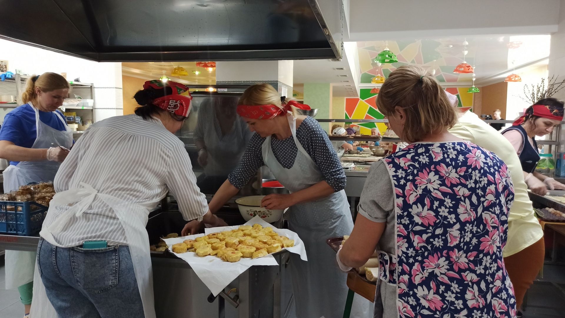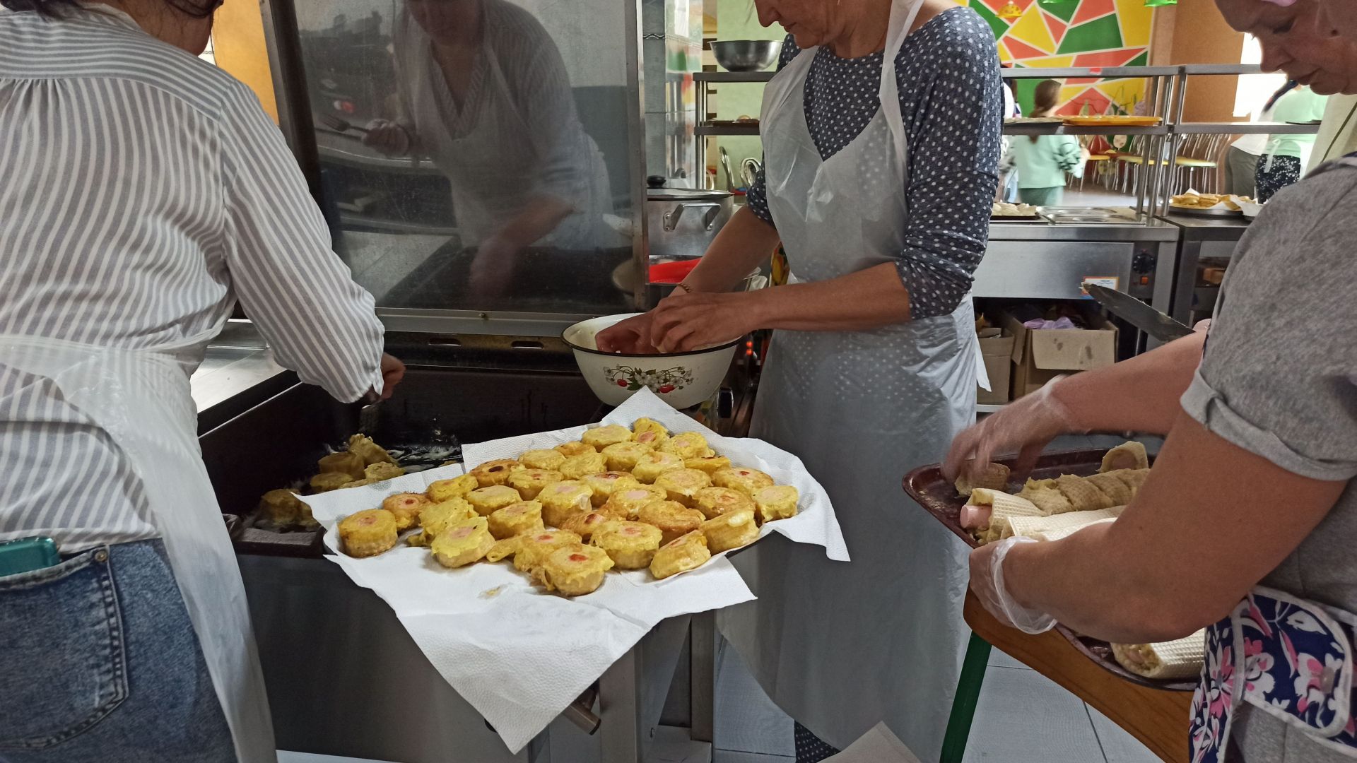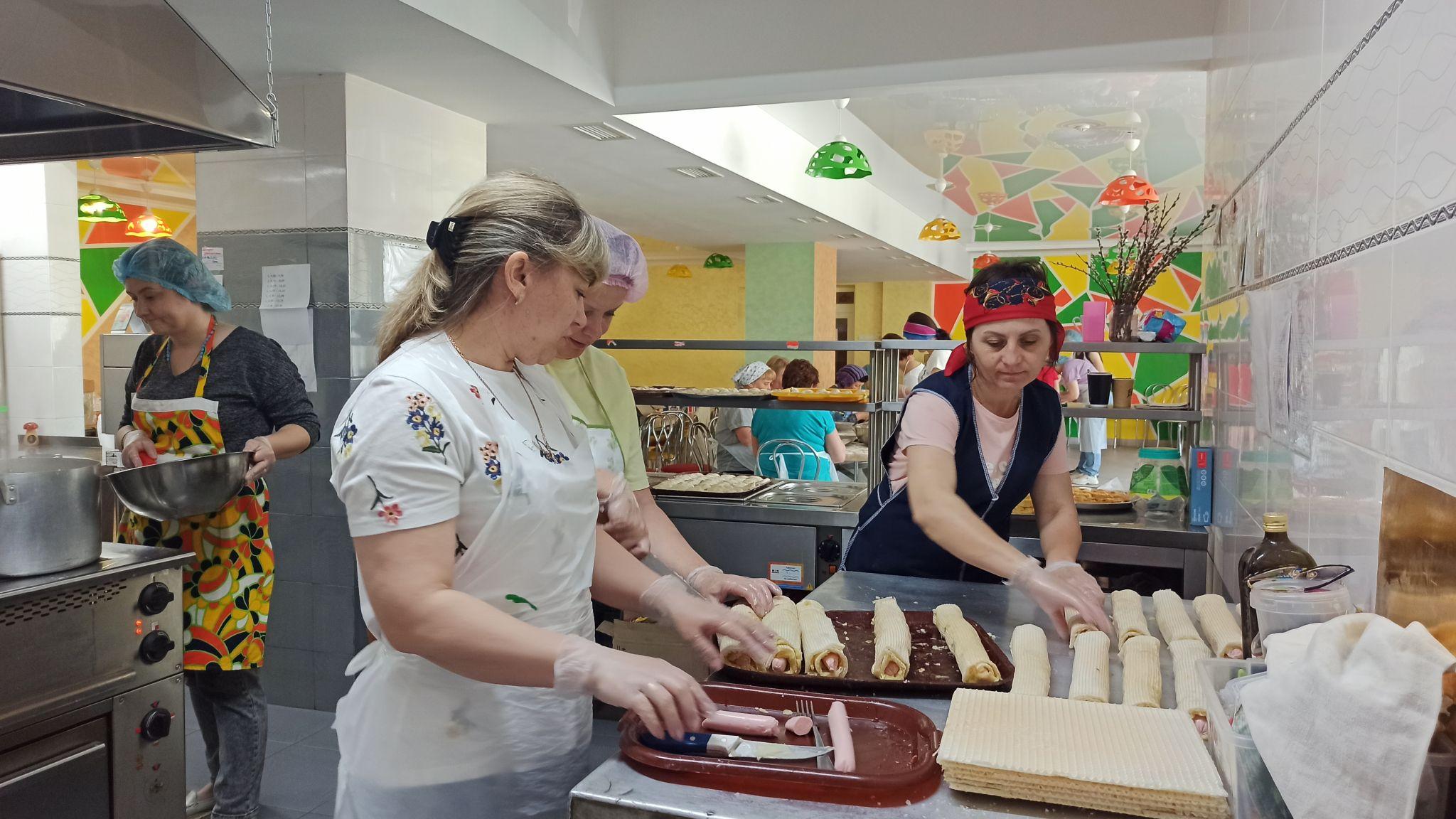Колектив закладу поділився на «бригади» по кілька осіб, які працювали на кухні від 6 ранку до 12 ночі, аби встигнути все приготувати. Коли переселенці роз’їхались, вчителі продовжили свою справу й відтоді готують та передають смаколики нашим військовим у «гарячі точки».