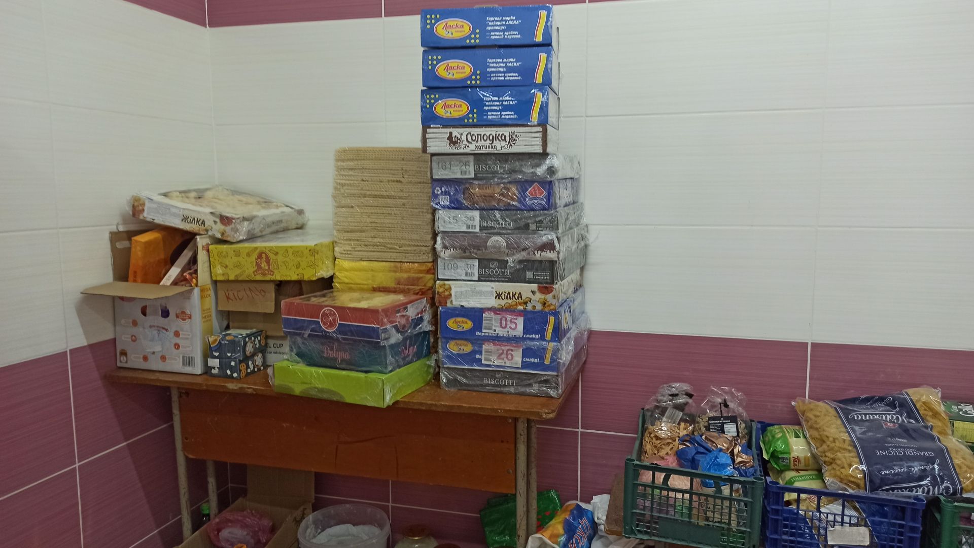 – Вчителі приготували понад 8 тисяч кілограмів картоплі, більше 5 тисяч кілограмів сухого печива. Його випікають жінки з кожного села нашої громади й везуть сюди, у школу, як своєрідний координаційний центр. Тут ми випічку фасуємо й запаковуємо. Також передали захисникам більше трьох тисяч кілограм вареників з різними начинками, – пояснює жінка.