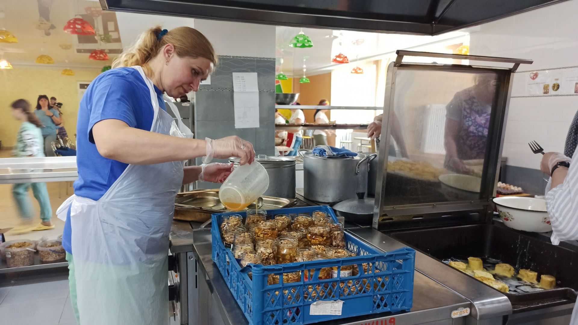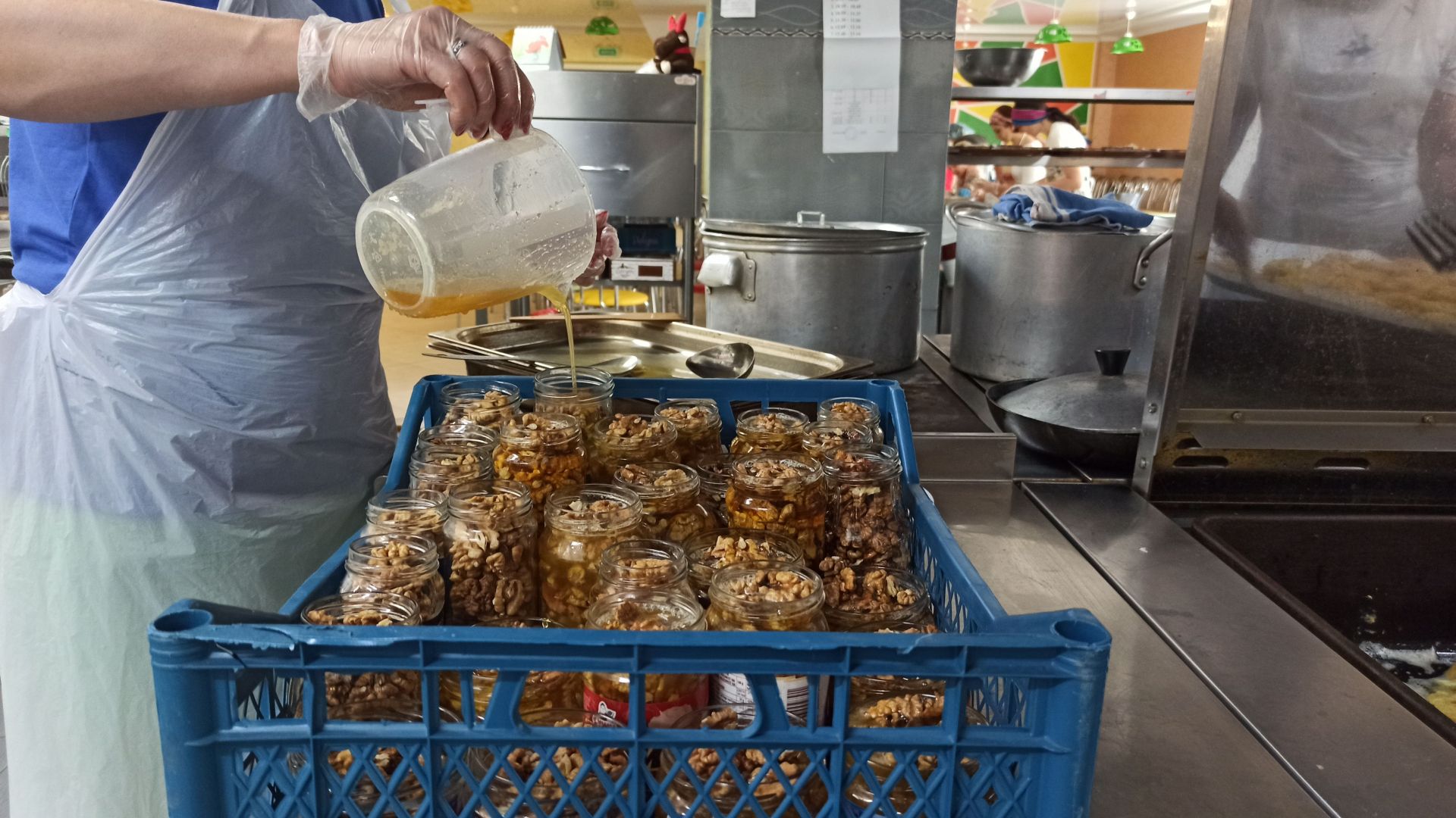 У школі намагаються зробити все, аби їжа до хлопців доїхала свіжою. Дещо зі страв вакумують, адже надворі досить спекотно, дещо заморожують. На кожну баночку, відерко й іншу тару клеять саморобну етикетку.