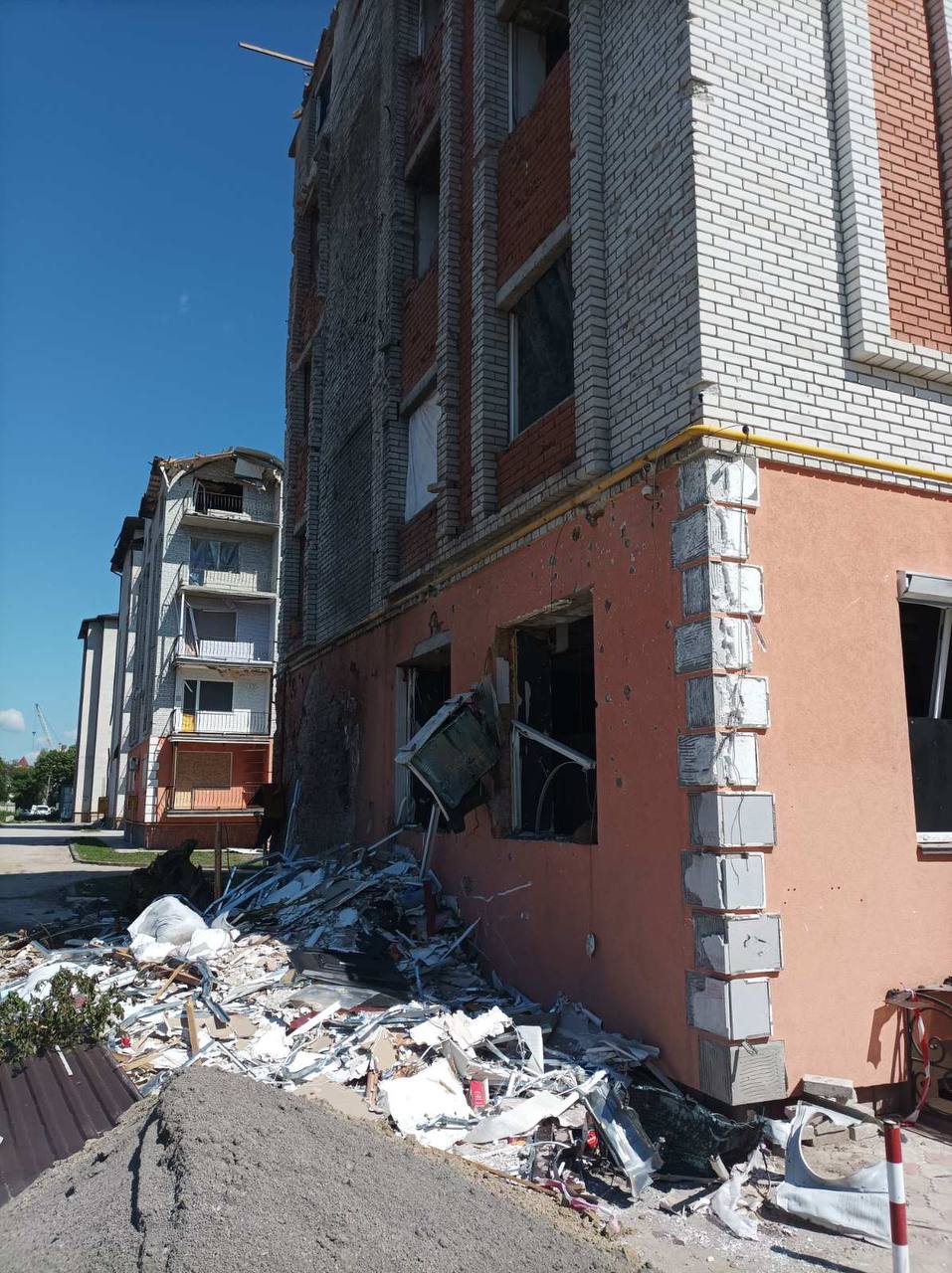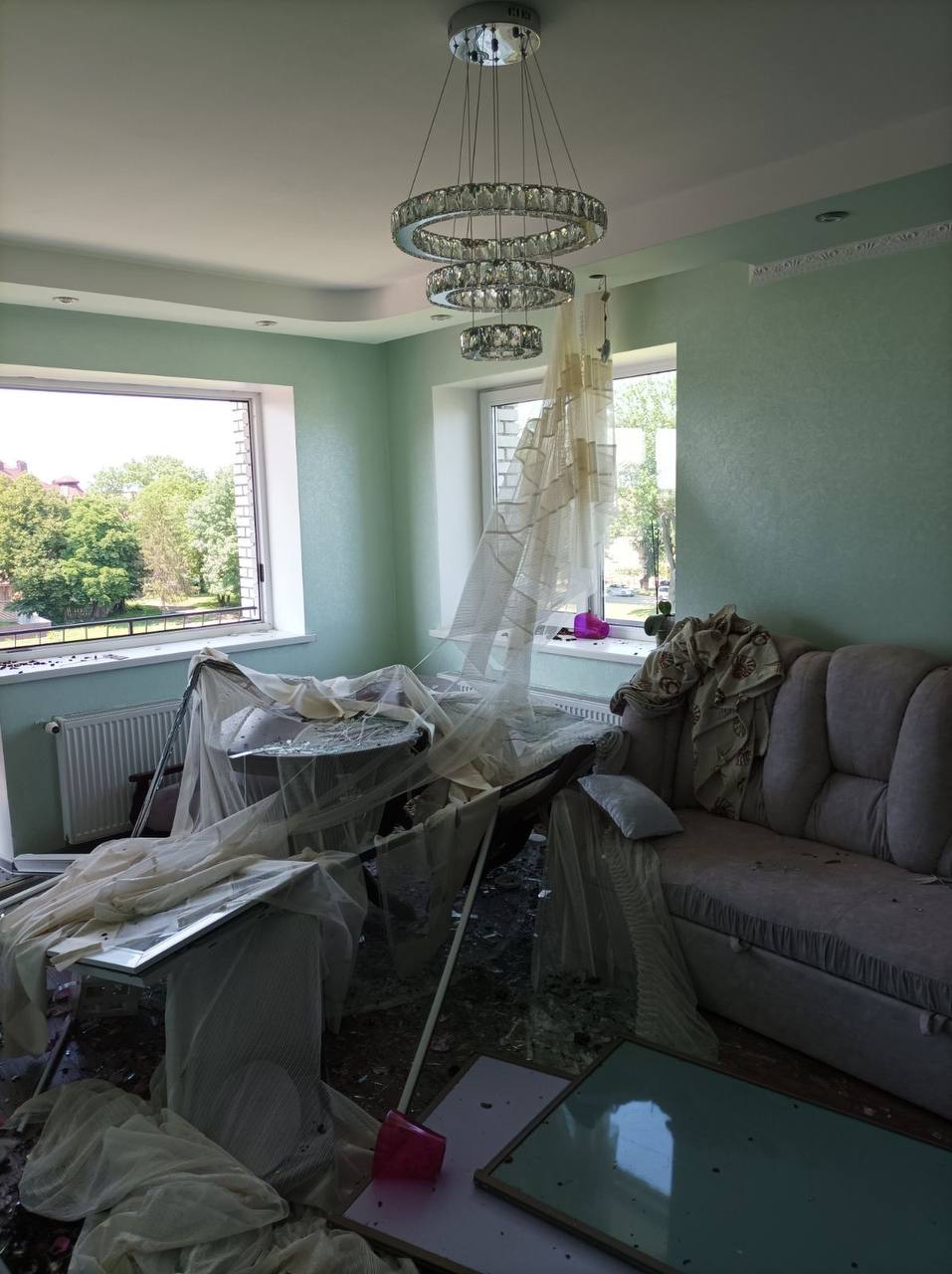 – У квартирі потріскалися стіни та стеля, повилітали вікна, двері, ламінат. Майже всі меблі посікло склом. Наш добротний, новий ремонт був повністю знищений. Звичайно, з іншого боку будинку ситуація у квартирах гірша….Там все горіло, падали перестінки, – каже пан Володимир. – З будинку злетіла облицювальна цегла, четвертий та п’ятий поверх треба було повністю розібрати та перемурувати. У даху були такі дірки, що можна дивитися на небо. А самонесуча стіна відійшла на 5 сантиметрів.