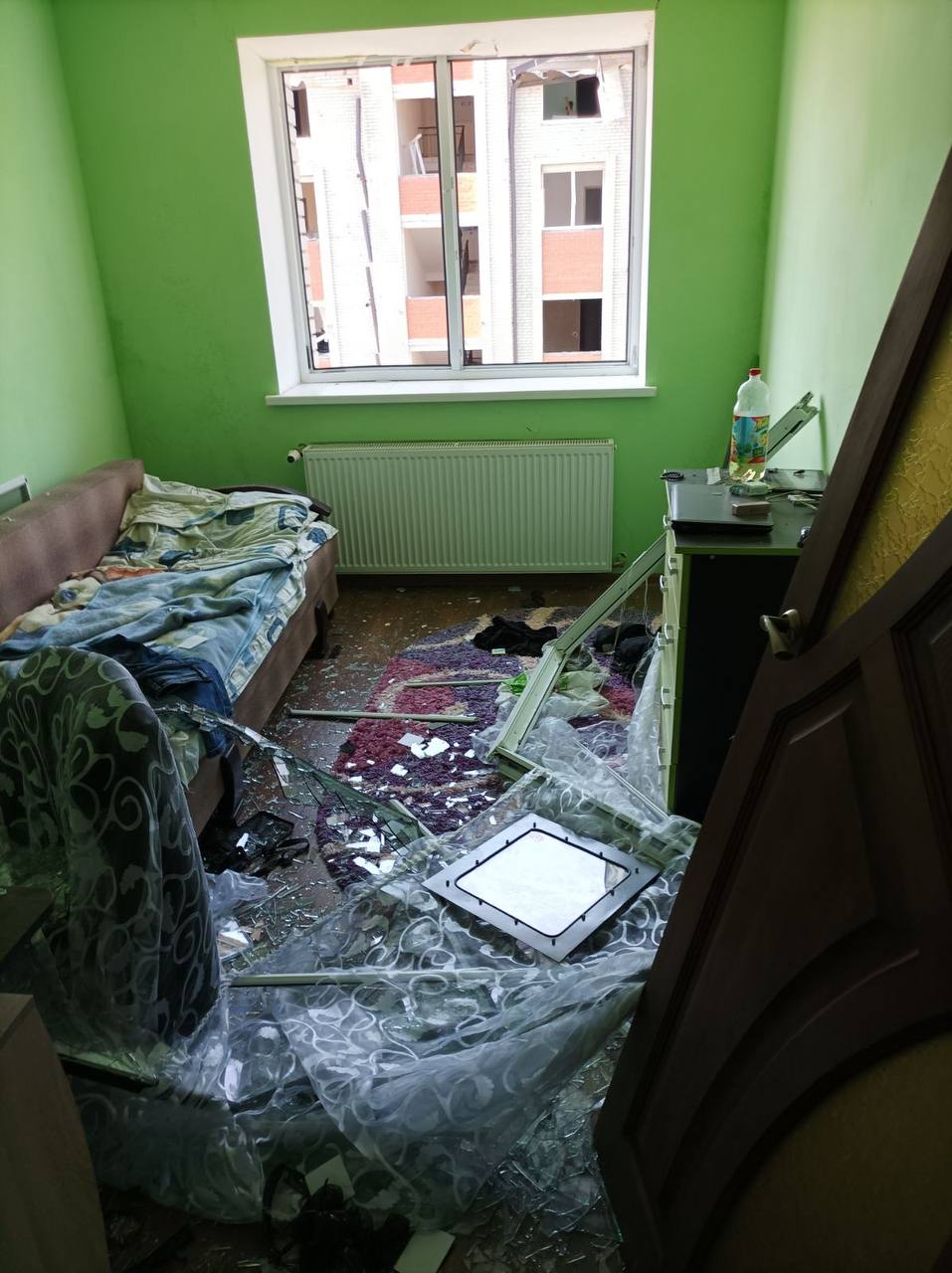 Володимир Капкан проживає на вулиці Степана Бандери та очолює місцеве ОСББ. Зі слів чоловіка, на момент вибуху він перебував вдома і хоча його квартира розташована з протилежного боку від місця влучання, але жодна кімната не вціліла.