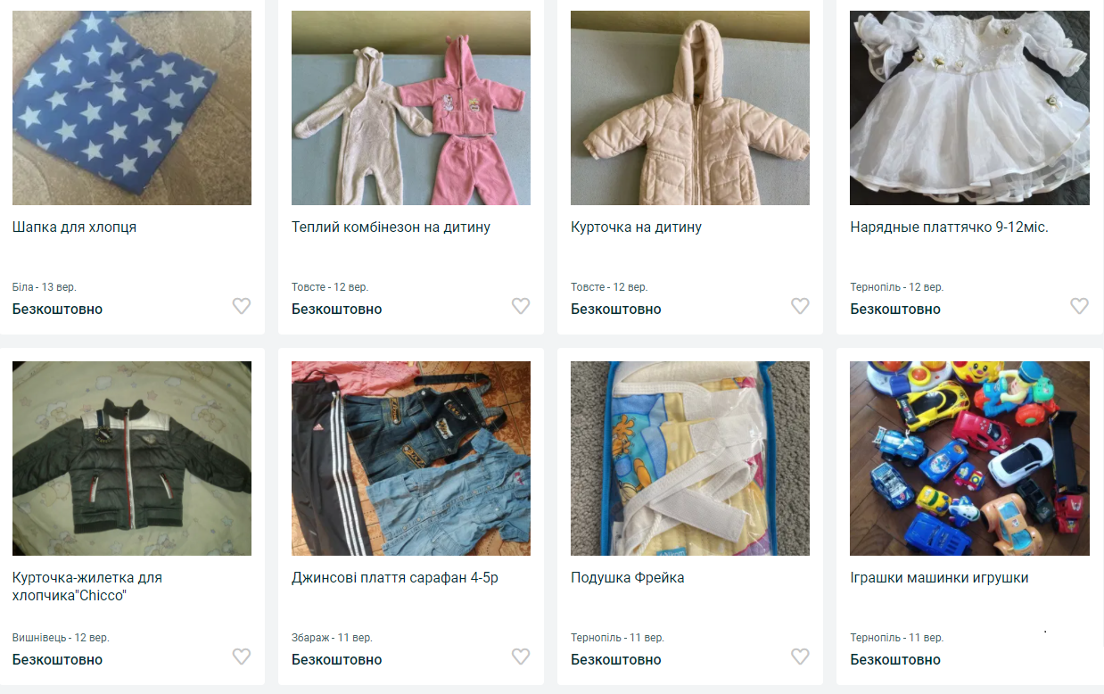 Дехто ж віддає речі на сайтах безкоштовних оголошень. Переважно – дитячий та жіночий одяг і взуття. Чоловічого мало.