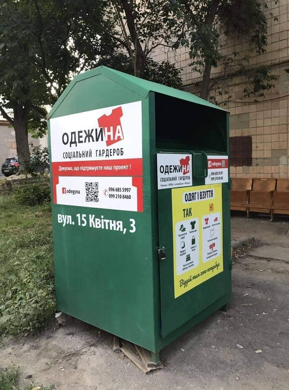 Ще один контейнер для благодійності є на вулиці 15 Квітня, 3 (біля «Одежини»).