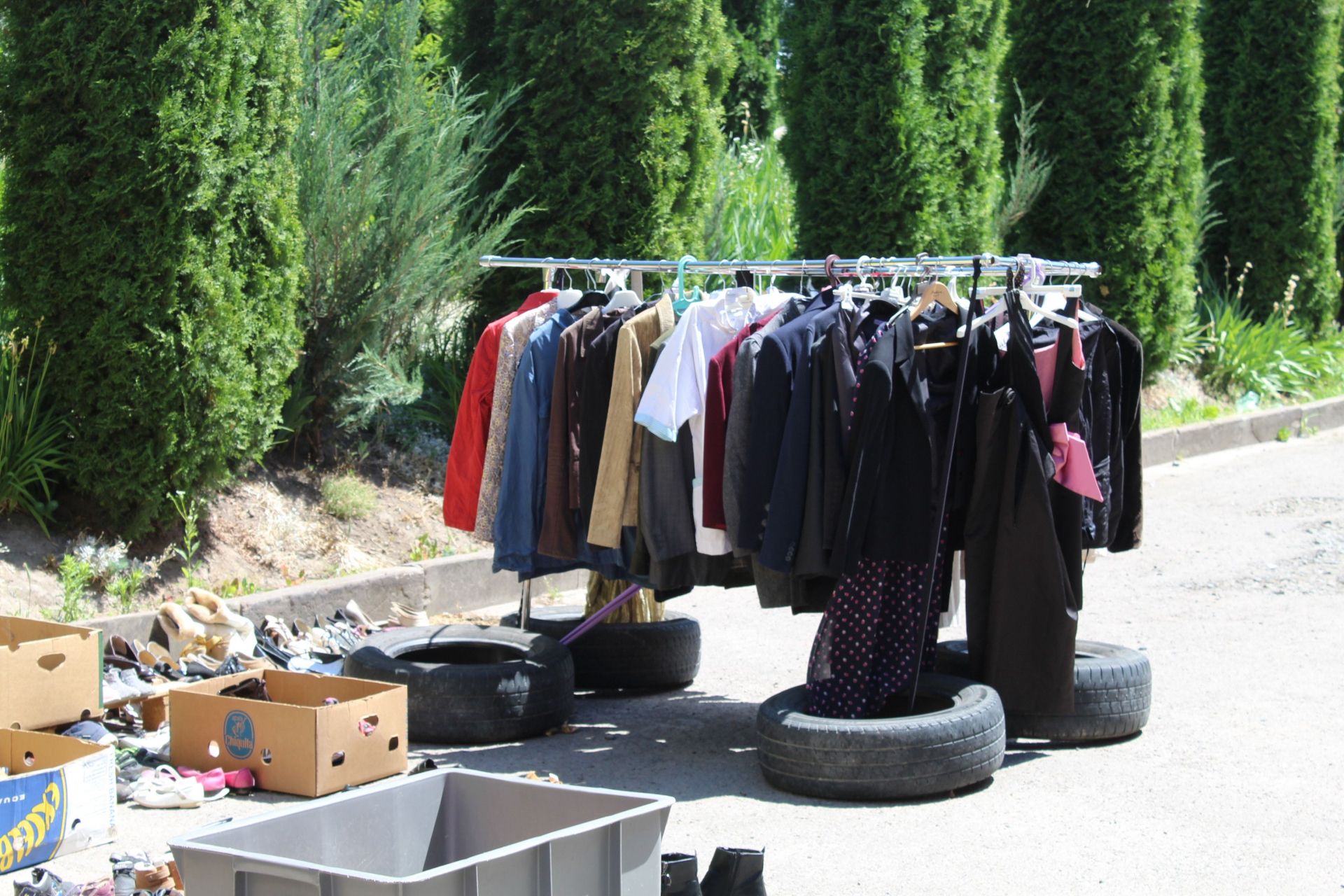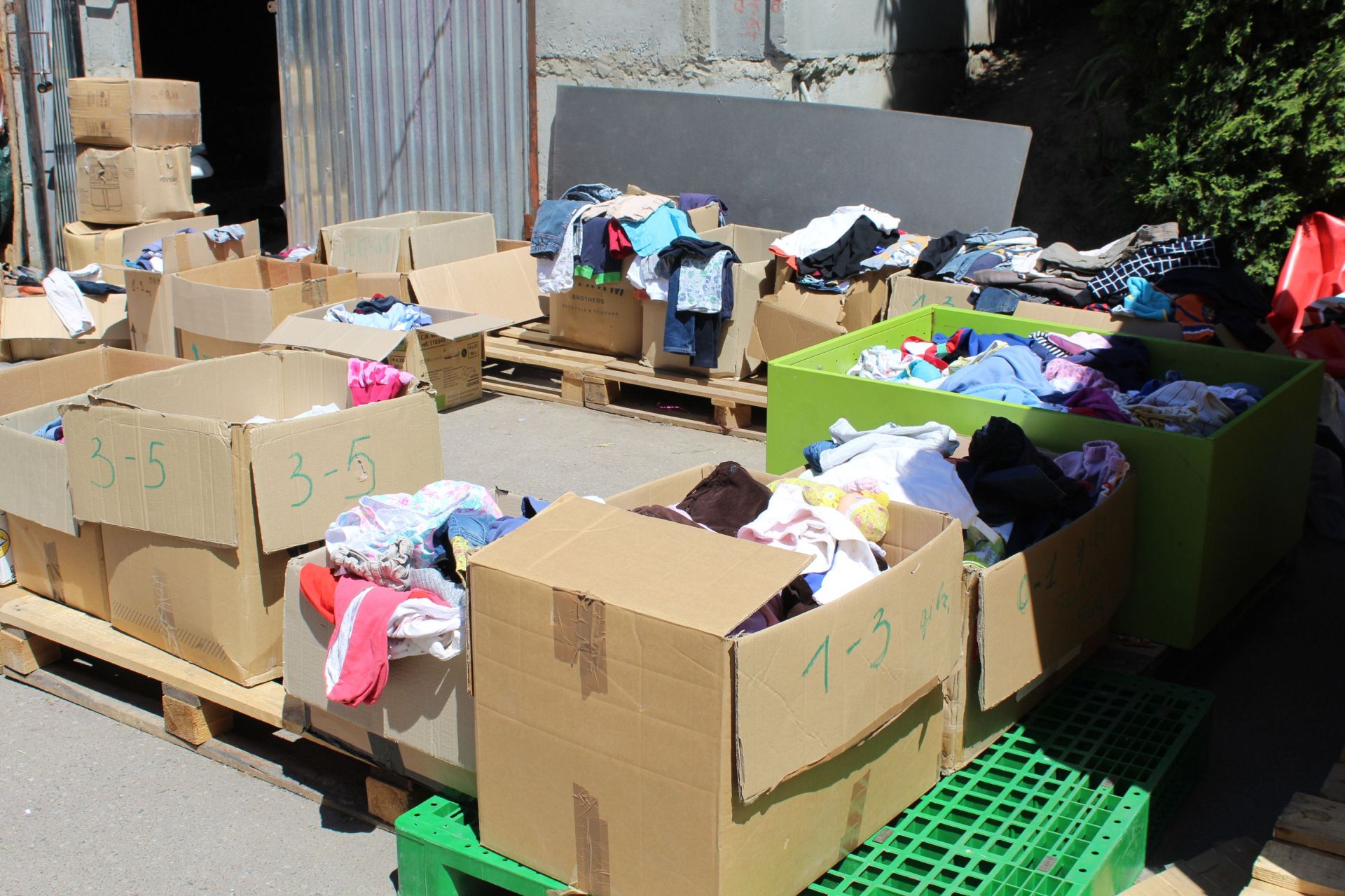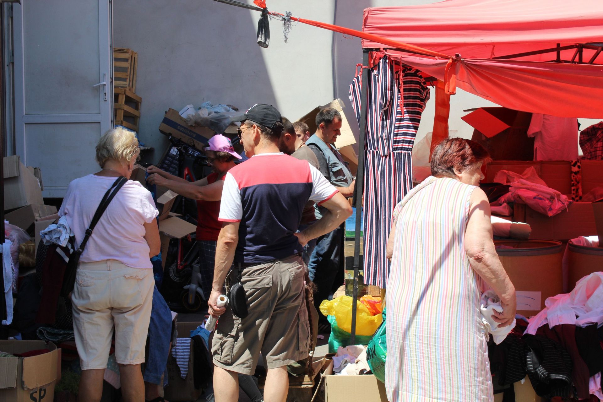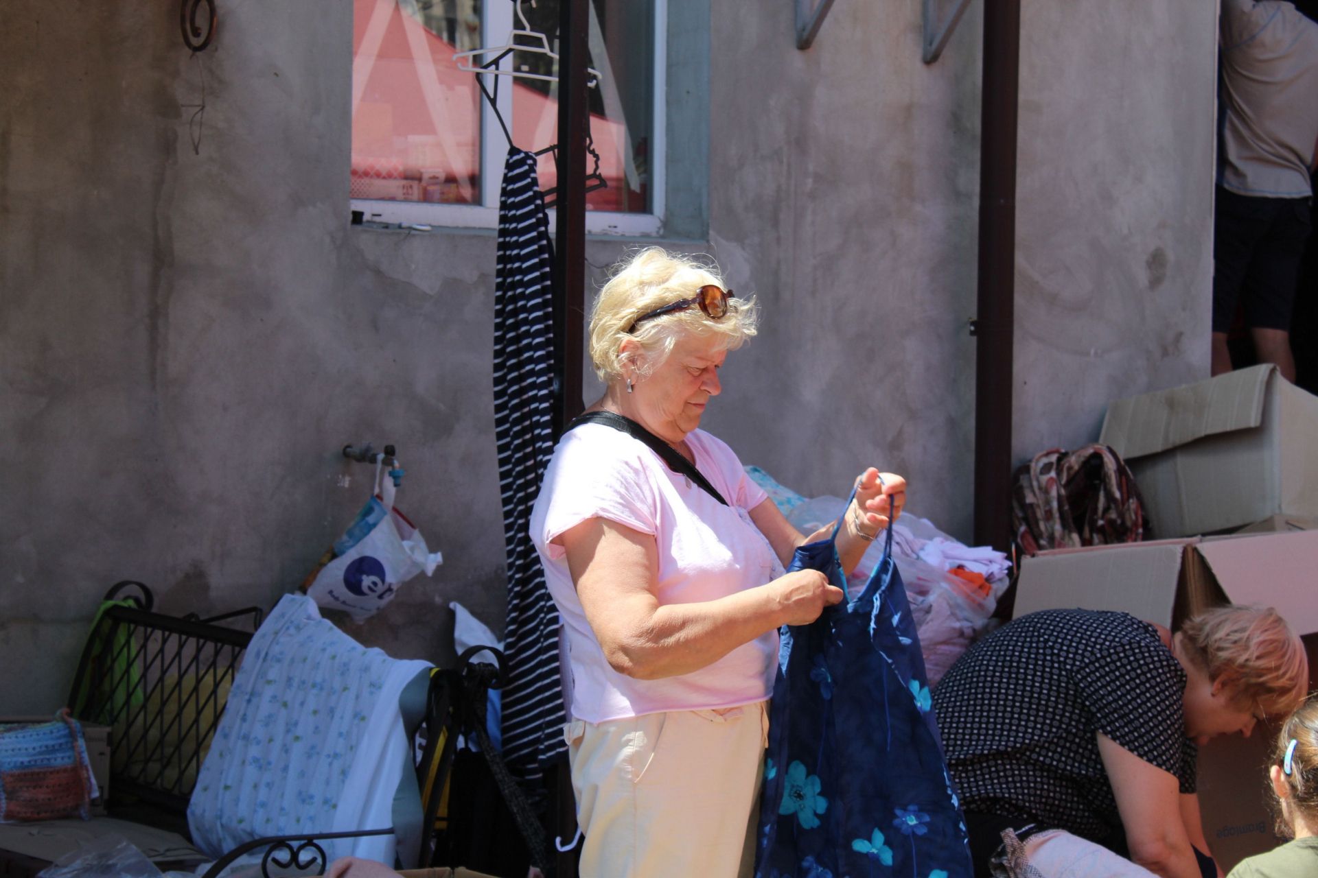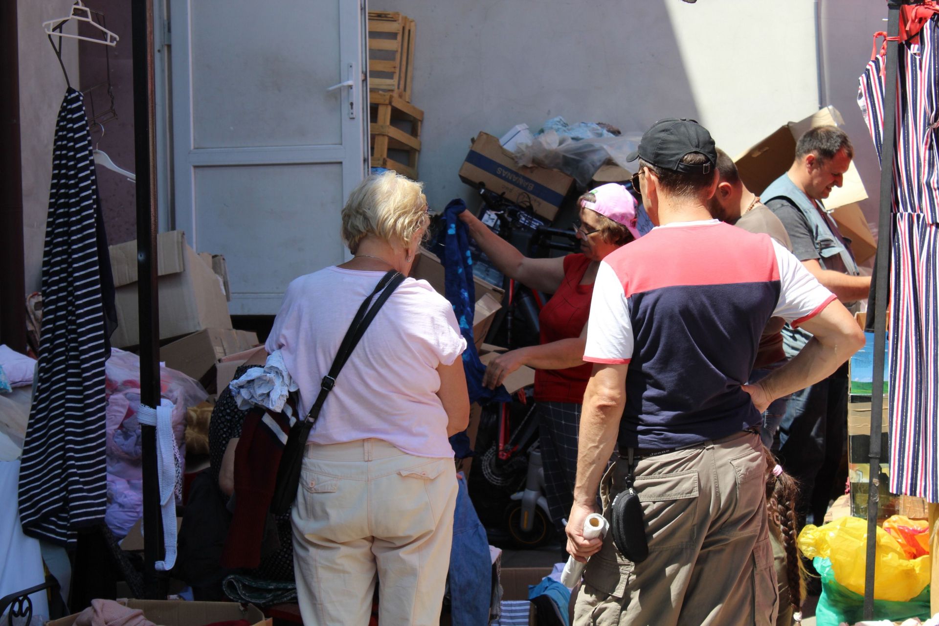 На базі благодійного фонду нині шумно, бо чимало людей прийшли вибрати собі одяг на літо.