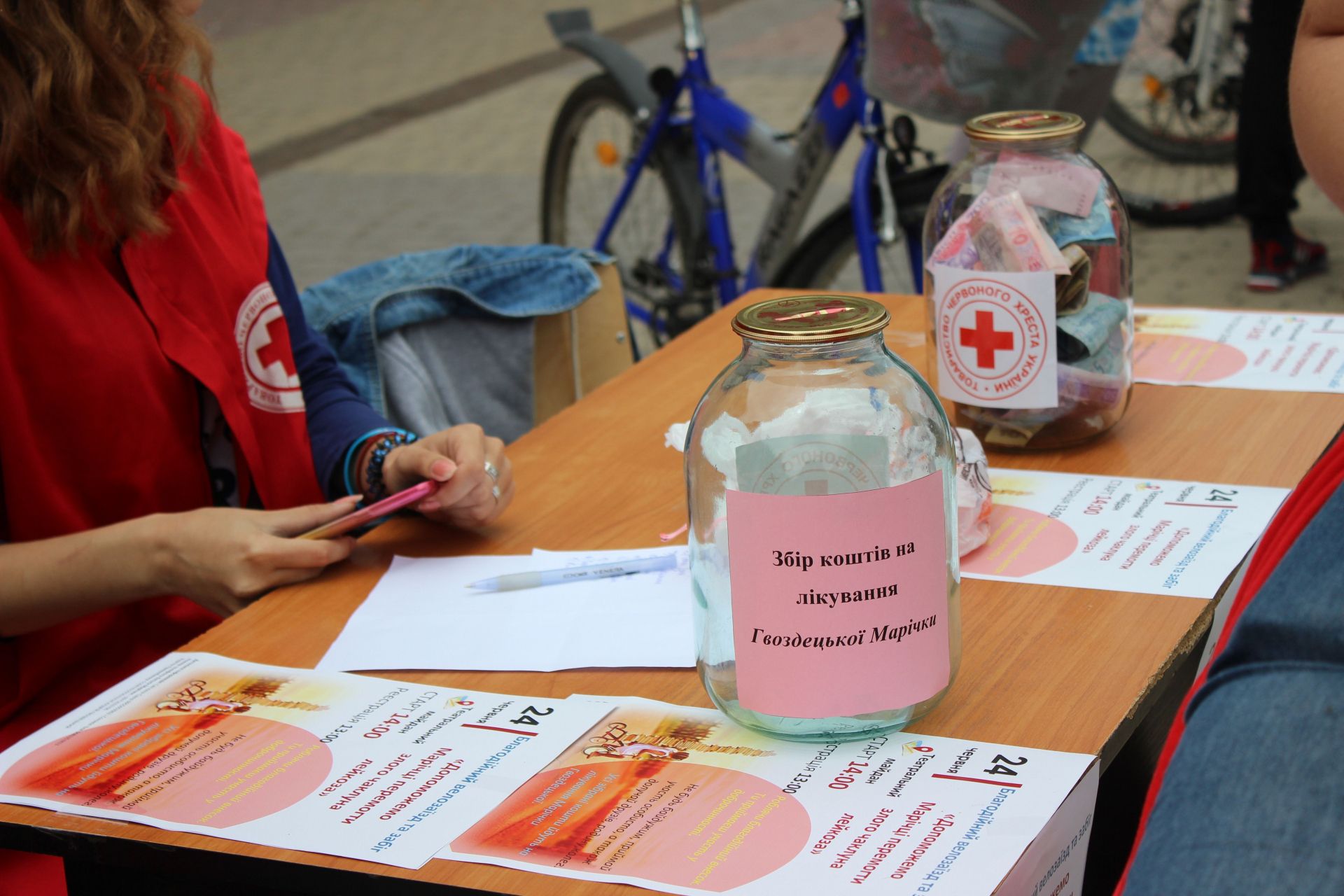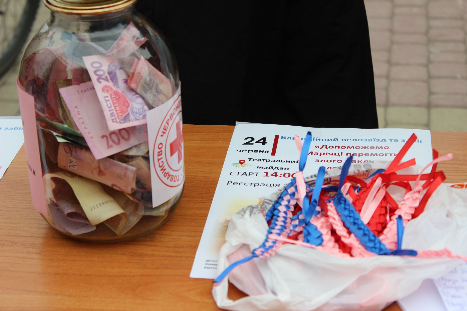 Учасники акції реєструвались, у скриньку кидали гроші - хто скільки міг, і отримували браслети, які самостійно сплела Марічка з друзями.