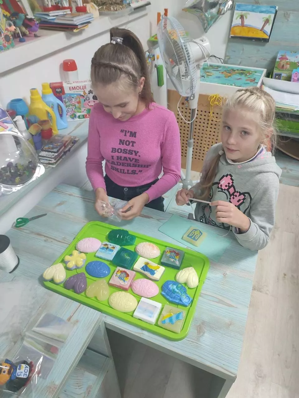 - Продає малеча власноруч створені вироби, а кошти перераховує на благодійні фонди для придбання обладнання та теплих речей.