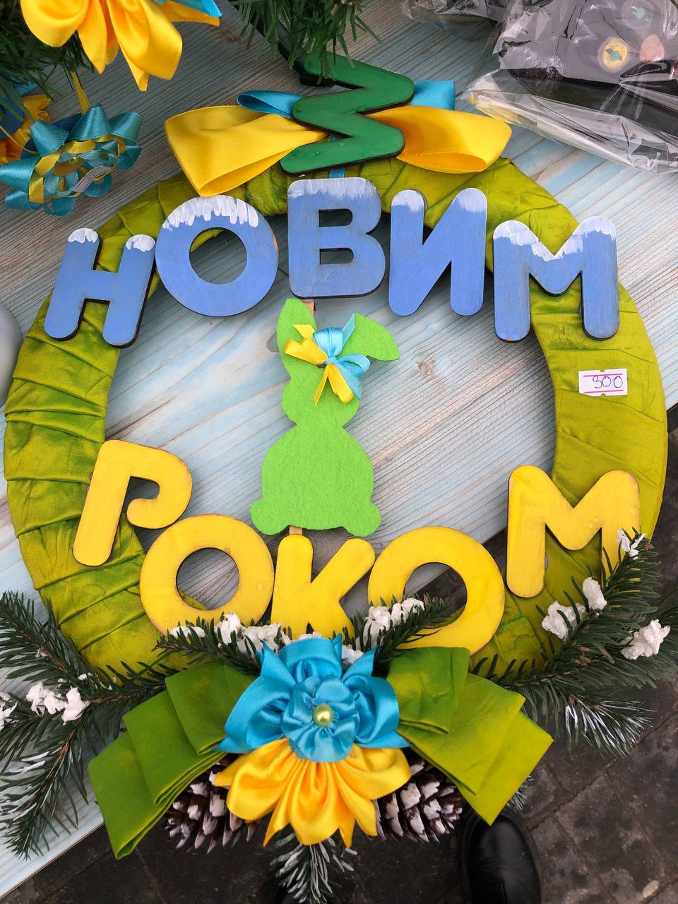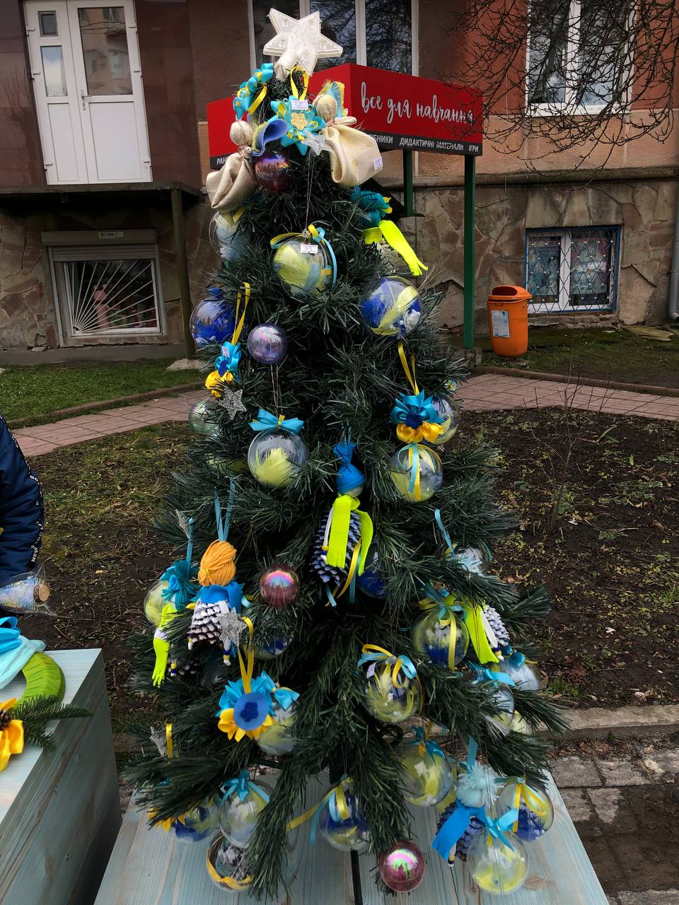 Якщо ви ще не визначилися, в якому стилі зробити новорічну ялинку, то діти з радістю допоможуть вам підібрати іграшки. Є як патріотичні, так і з бавовною. А також для ваших дверей знайдеться різдвяний віночок.