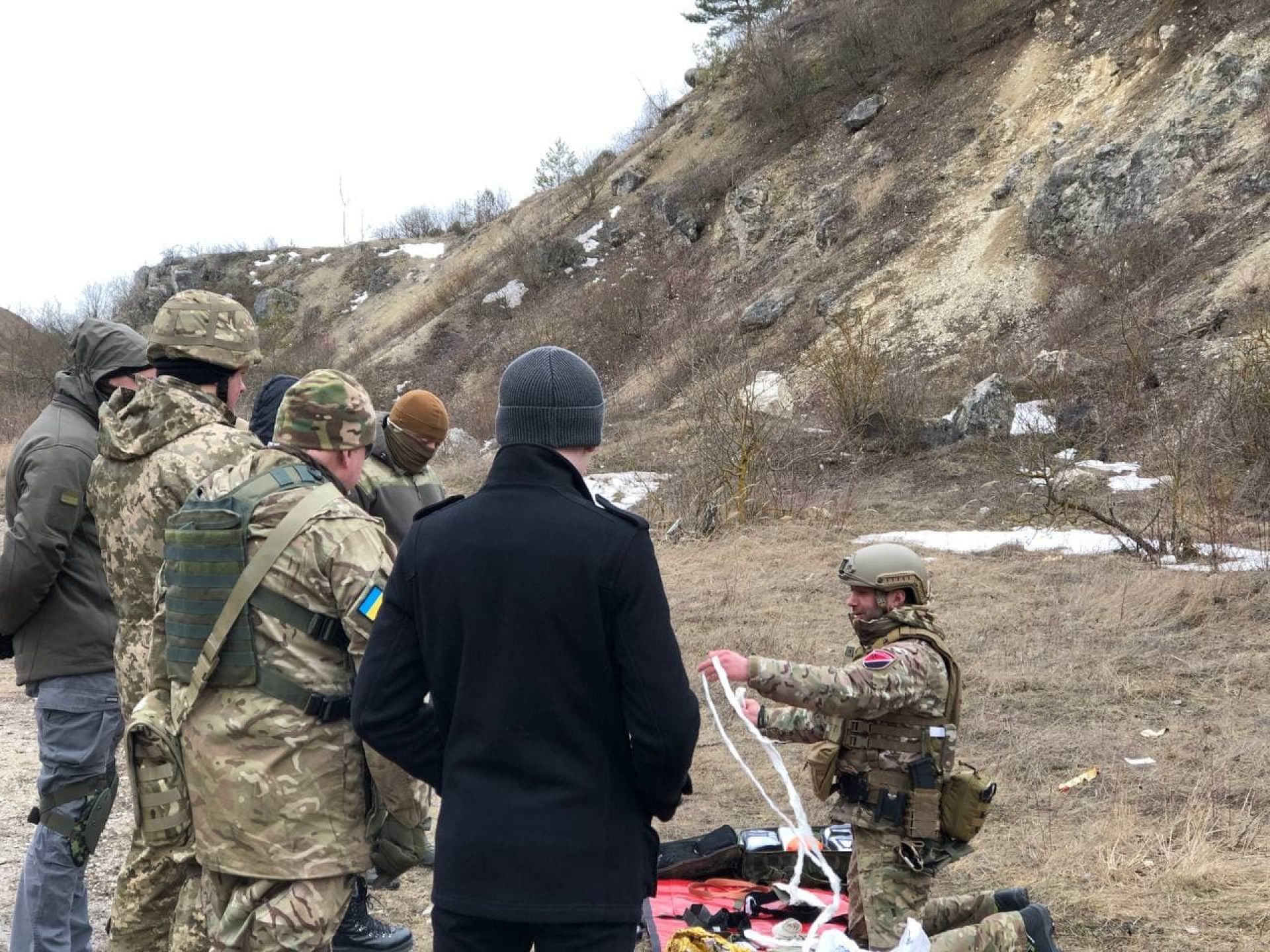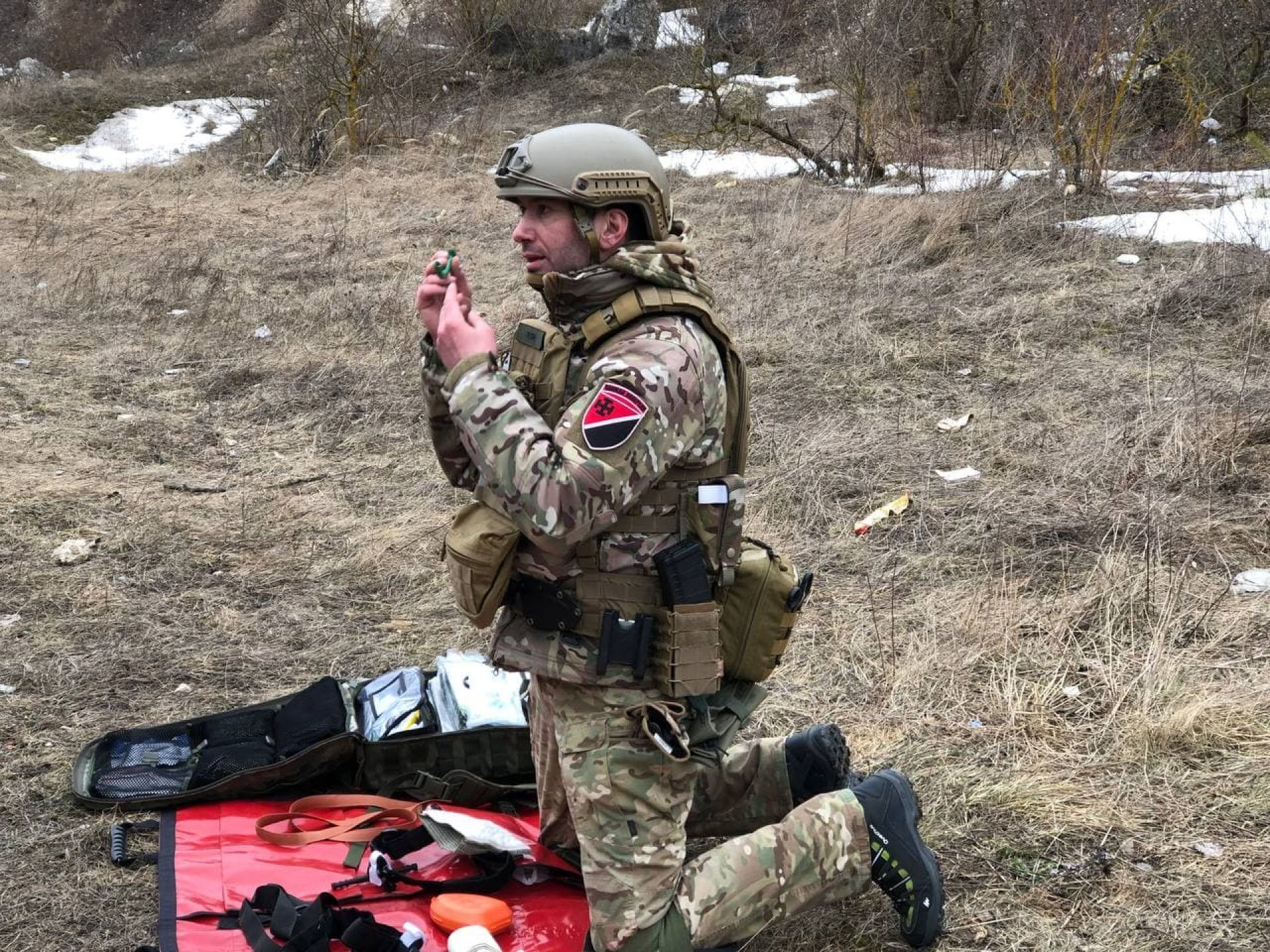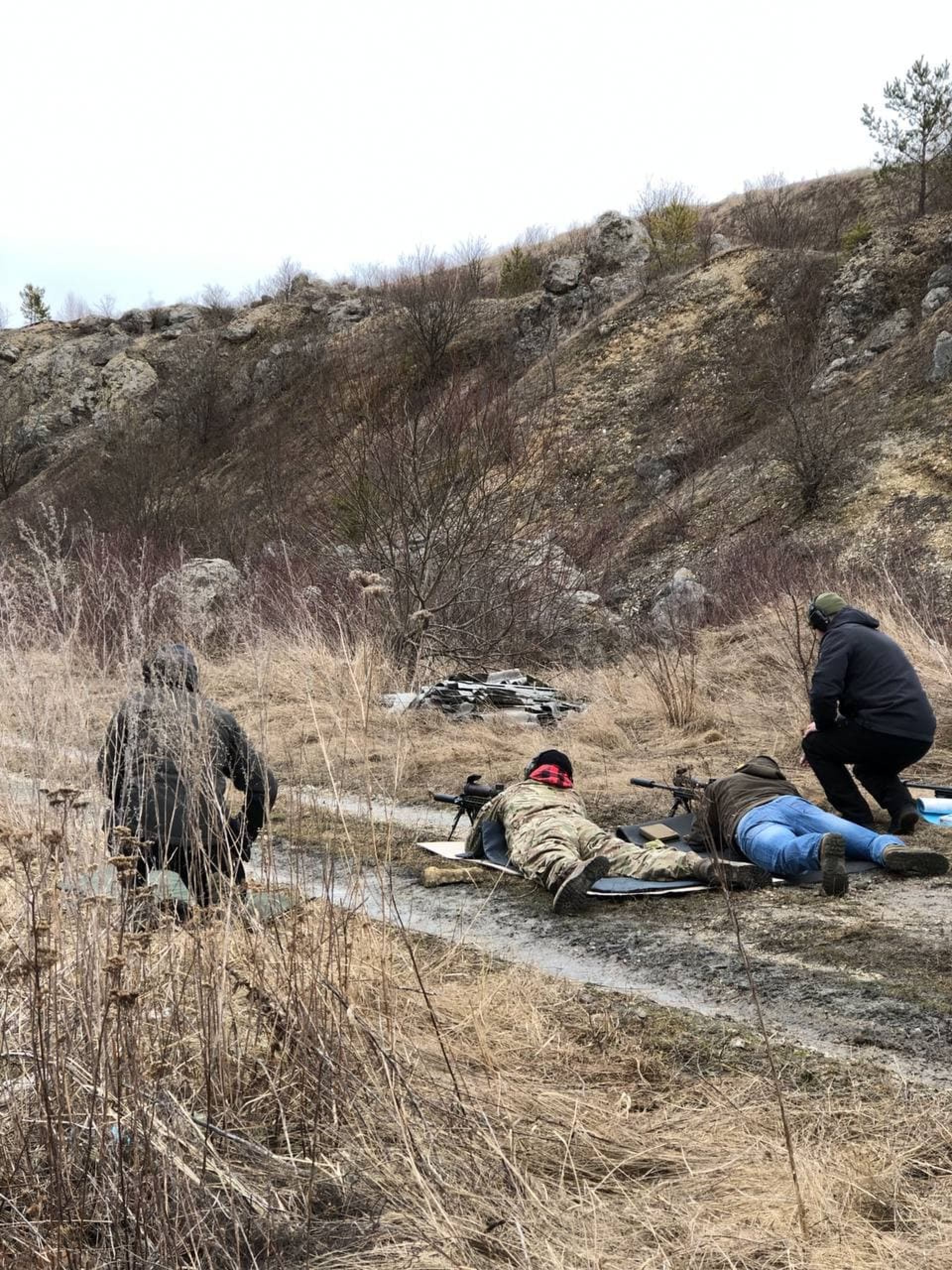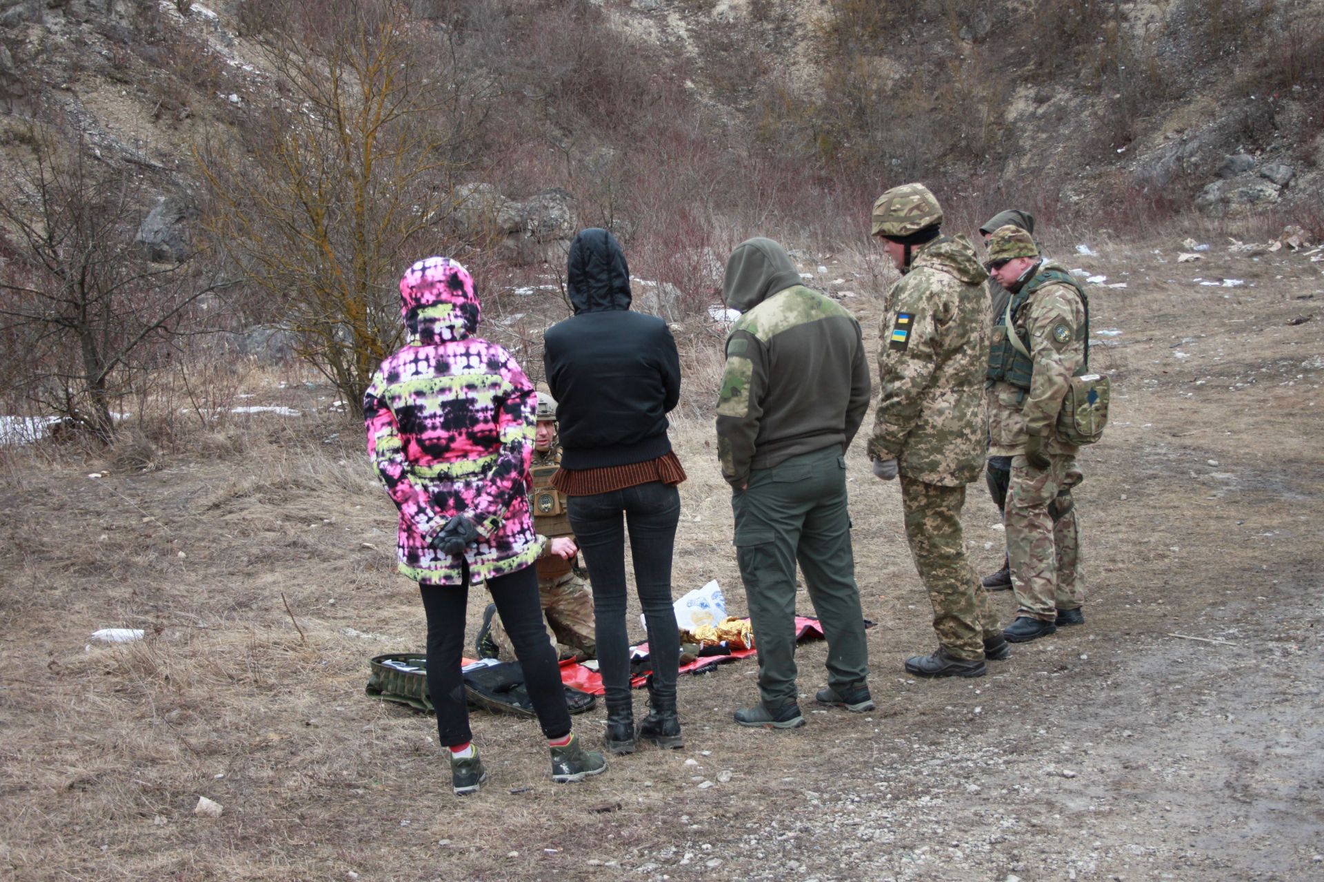 На місці навчань справжні польові умови. Рівнини і пагорби. Великі каміння і хащі. Людей поділили на дві групи. Одні пішли навчатися медпідготовці, інші — на стрільбу.