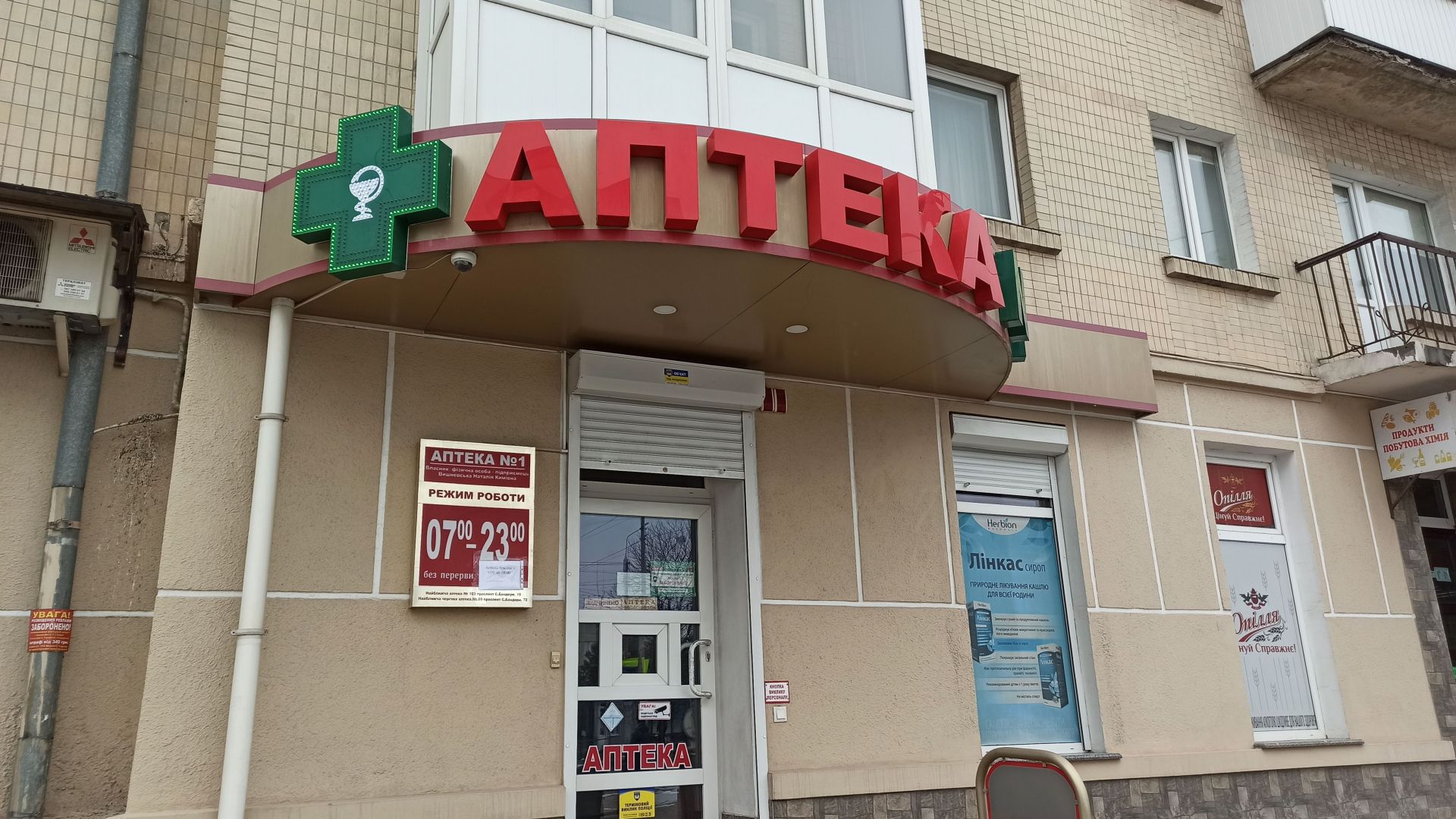 Аптека «Мед-Сервіс». Адреса: площа Перемоги, 4б (мікрорайон Дружба). Працівниця аптеки розповіла, що у мирний час вони працювали цілодобово, але зараз – максимум до 18:00.