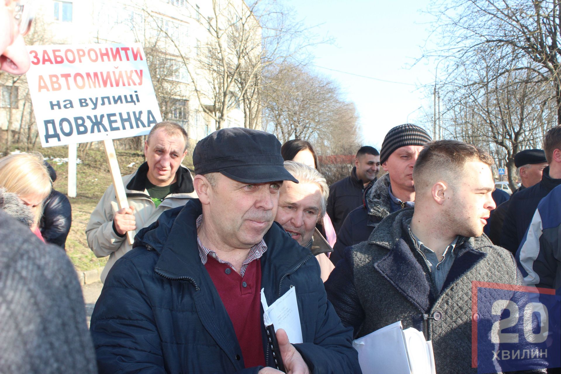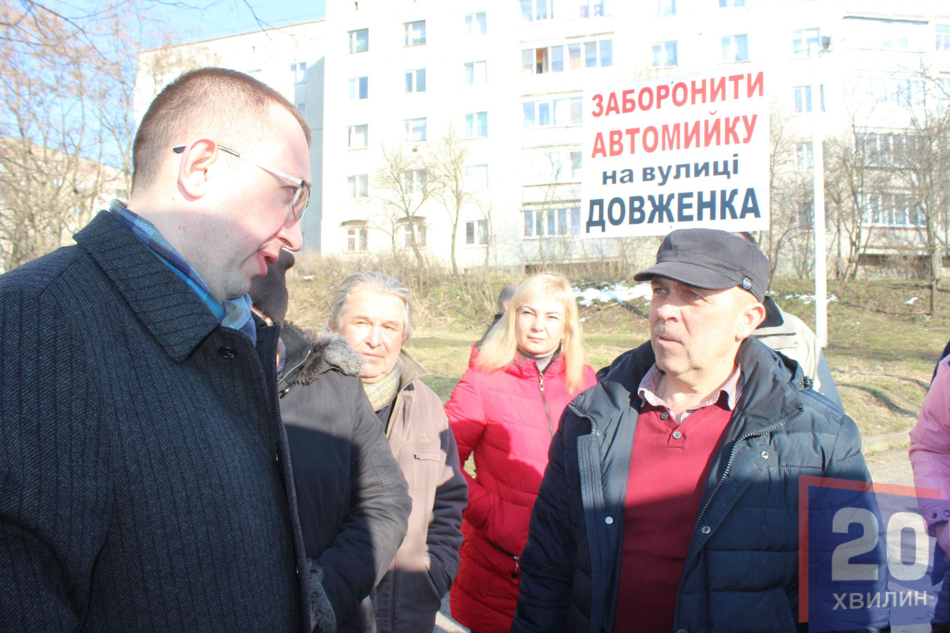 Без відома мешканців 16 лютого 2018 року на вул. Довженка зрізали 30 дерев. А коли люди дізналися, що там ще й буде три автомийки - вийшли на пікет.