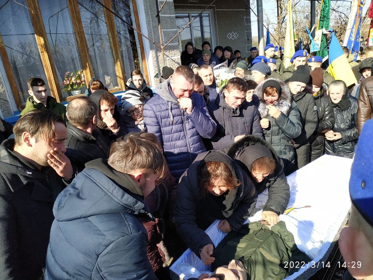 Тіло захисника привезли у Товстенську громади привезли 13 березня. Односельчани на колінах зустрічали загиблого бійця.