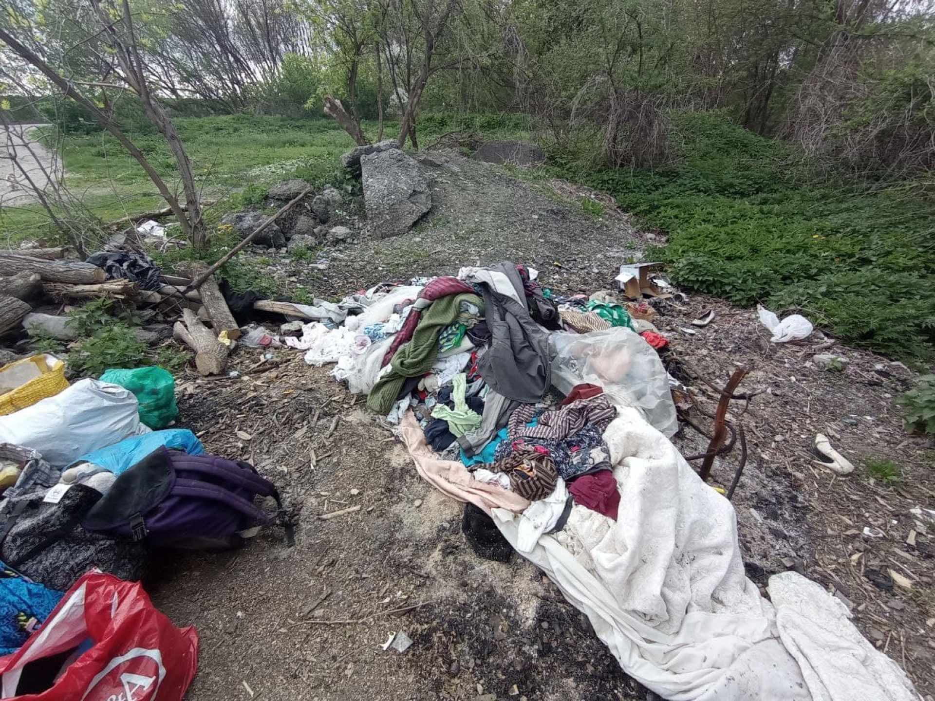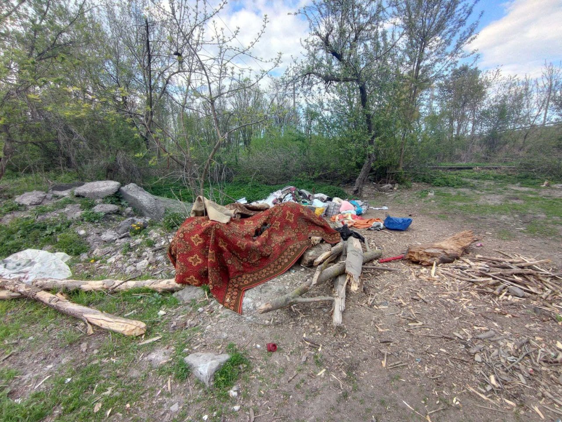 Ми спробували розшукати те саме місце, де колись був табір. Однак там, де були намети, нічого не залишилось. На тому місці, яке нам показали місцеві, слідів табору вже немає. Ми знайшли лишень кілька куп сміття. Можливо, його звезли туди місцеві та влаштували звалище, а, можливо, воно лишилось ще з тих часів. Поруч зі смітником – обгорілі дерева.