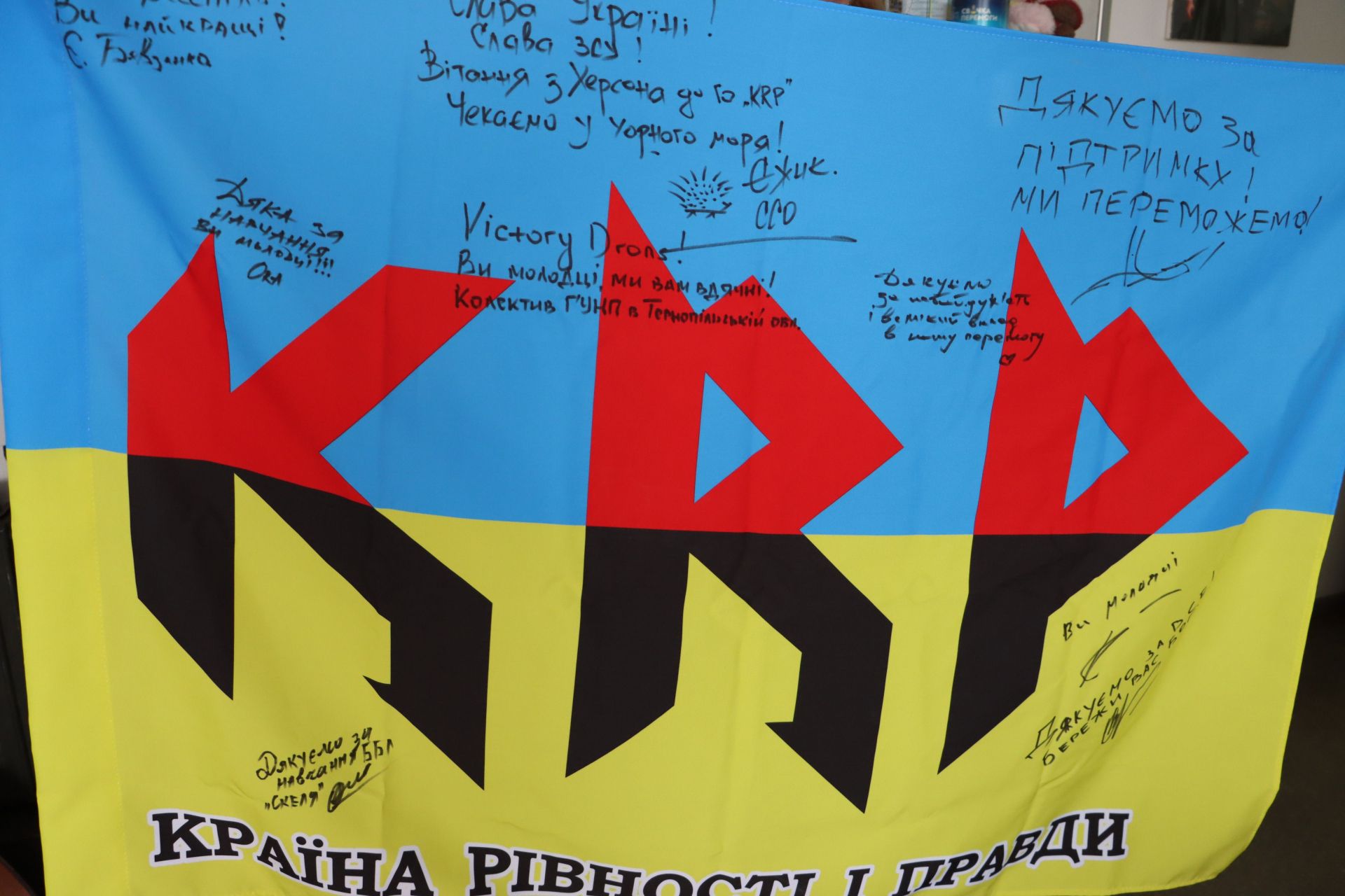 На годиннику 10:30 — в офісі тернопільської організації «Країна рівності і правди» кипить робота. Працюють комп’ютери, щохвилини лунають телефонні дзвінки із запитами. Невеличка команда працює, аби кожне прохання від наших захисників виконати якнайшвидше. А приміщення, у яке ми потрапляємо на розмову із лідерками організації – водночас виглядає наче патріотичний музей та склад з товарами. Тут і розмальовані гільзи та тубуси, і підписані воїнами прапори, і десятки грамот та подяк, а на підвіконні – коробки з-під дорогого обладнання, переважно дронів. Їх збирають наче на пам'ять про покупки, які зберегли життя хлопців.