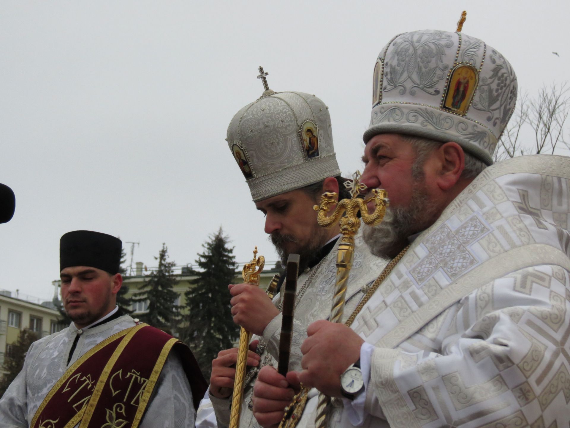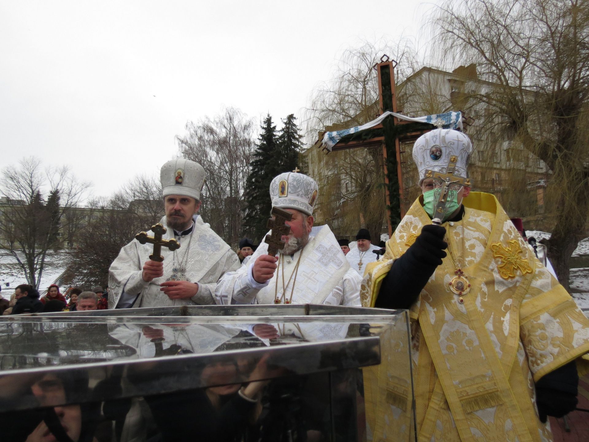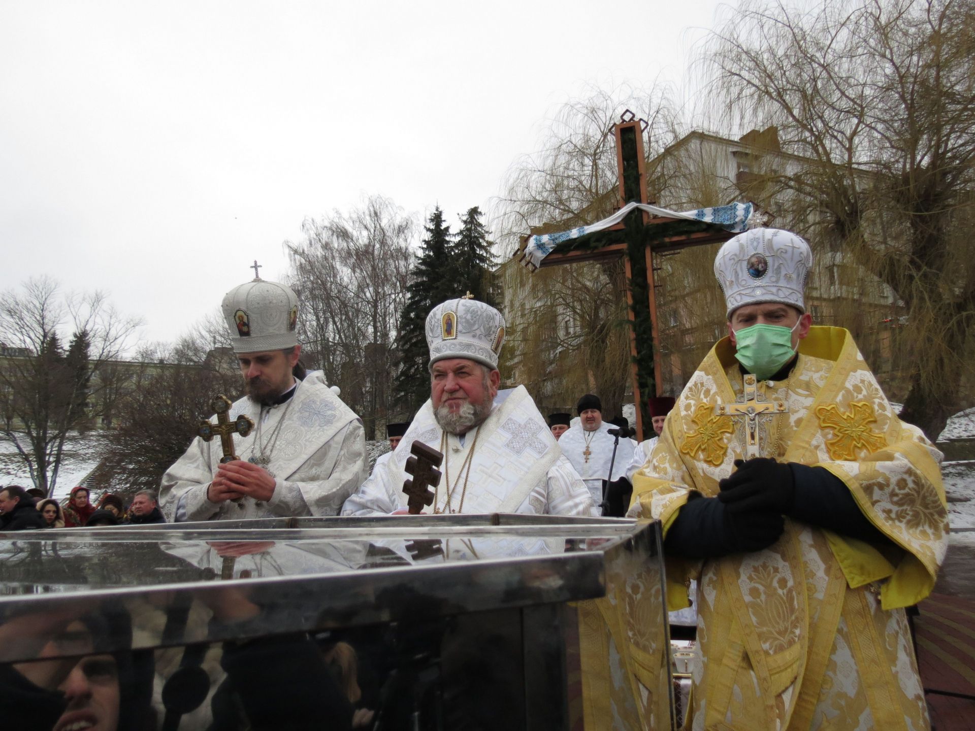 О 12 годині біля пам'ятного хреста, що встановили на честь Хрещення України у парку імені Тараса Шевченка провели міжконфесійний молебень та освятили воду на Водохреще для тернополян.