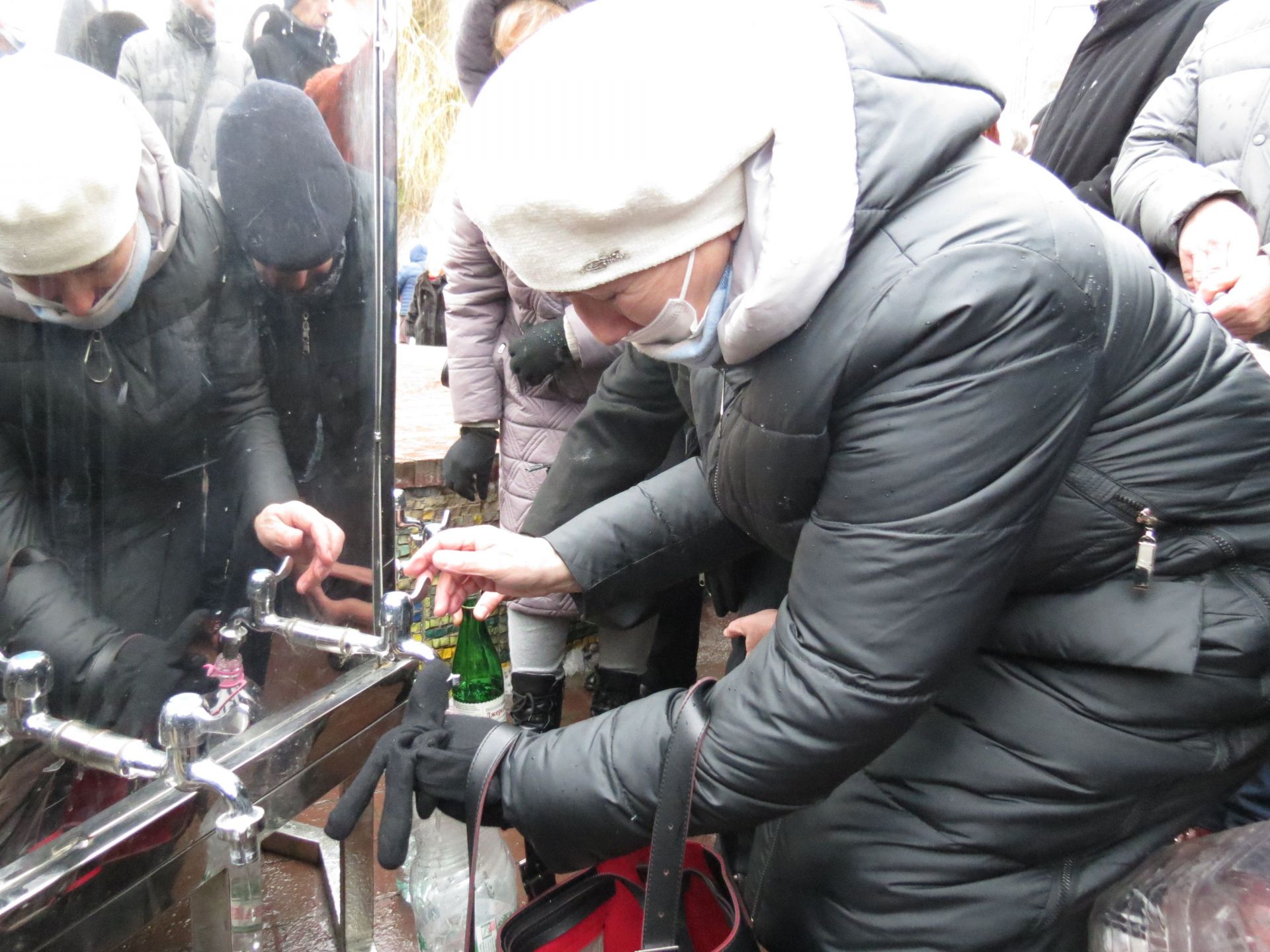 Охочих було настільки багато, що навіть утворилася черга, а людям, які вже набрали воду, було складно вийти.