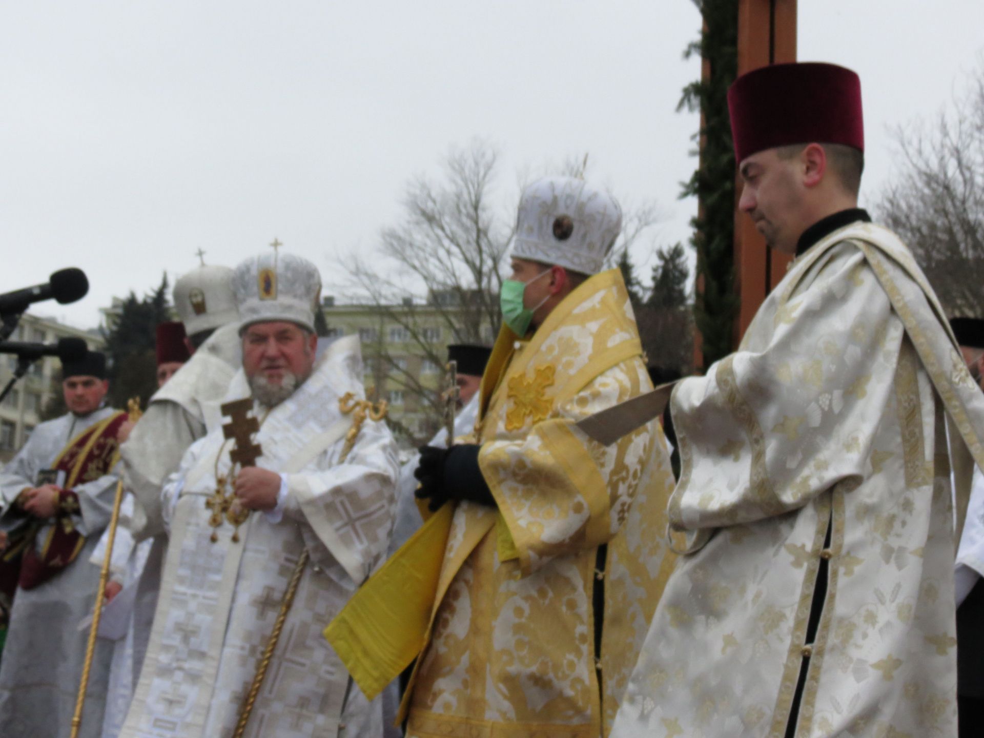 Вітали зі святом співами та молитвами: біля пам'ятного хреста священники освятили воду для тернополян
