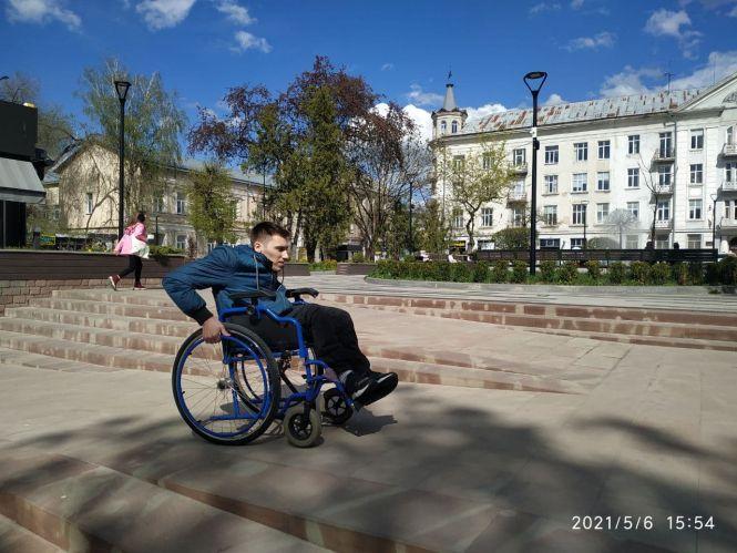 – Піднятися ними мені було не важко, – каже Тарас. – Але цей підйом для маломобільних груп слугує швидше естетичною «фішкою». Проєктанти могли зробити простіше і зробити підйом без такої кількості поворотів. До того ж, я можу просто об’їхати ці сходи зробивши невелике коло і все-одно дістануся до фонтану.