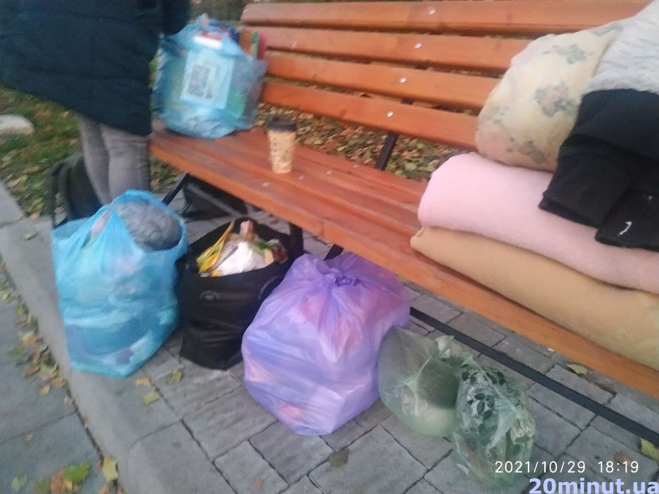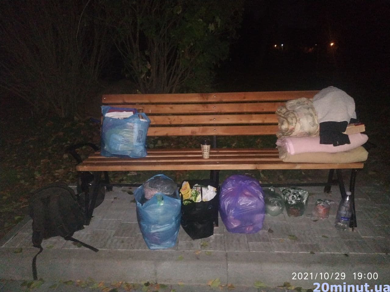 - Вже два дні мама з донькою ночують на лавці в парку «Топільче». З собою вони взяли кілька пакетів з речами, одягом та постіллю.