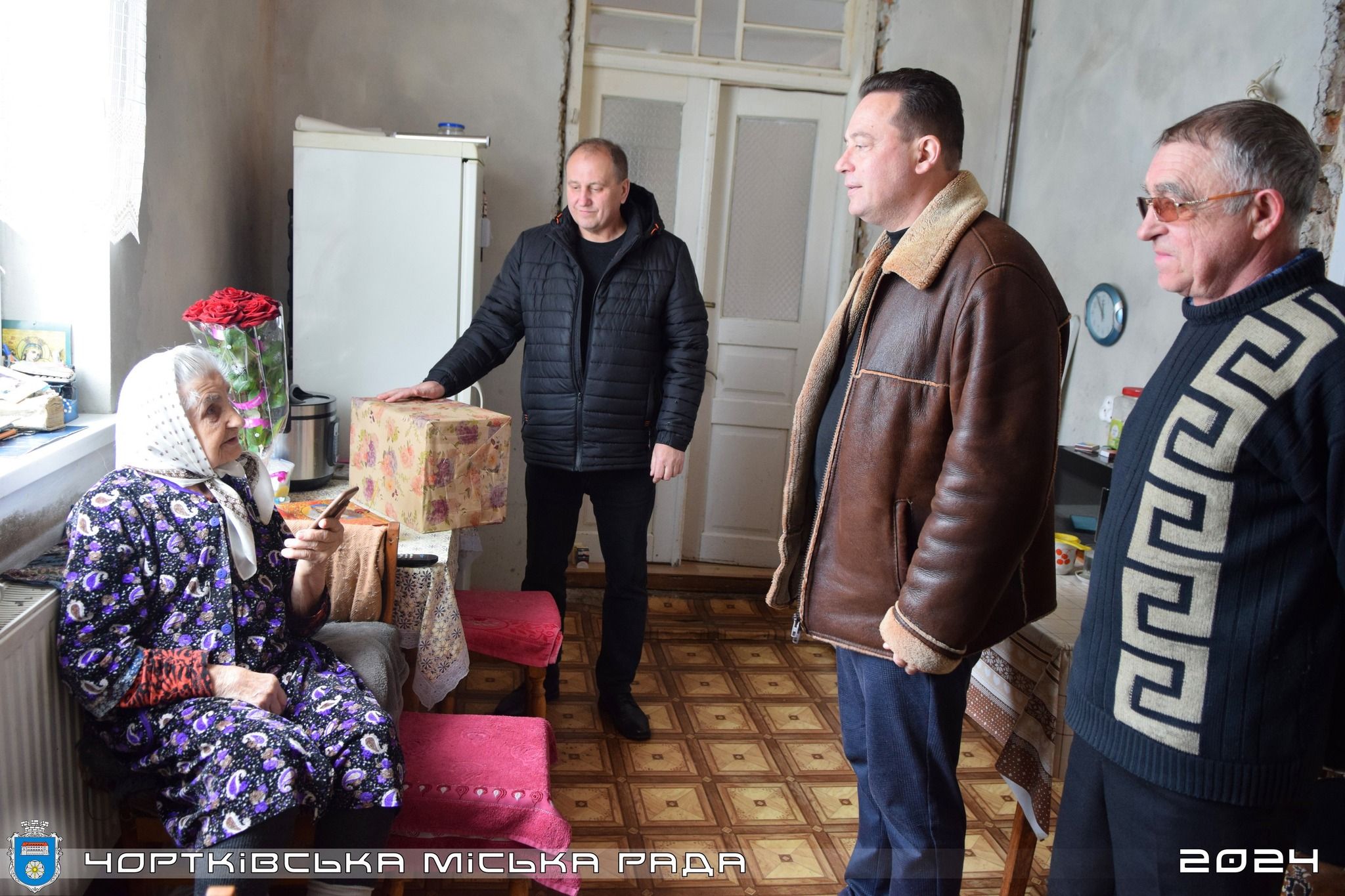Привітати пані Варвару з ювілеєм приїхали заступник міського голови Чорткова Віктор Гурин та начальник управління соціального захисту та охорони здоров’я Ігор Грицик. Ювілярці вручили подарунок.