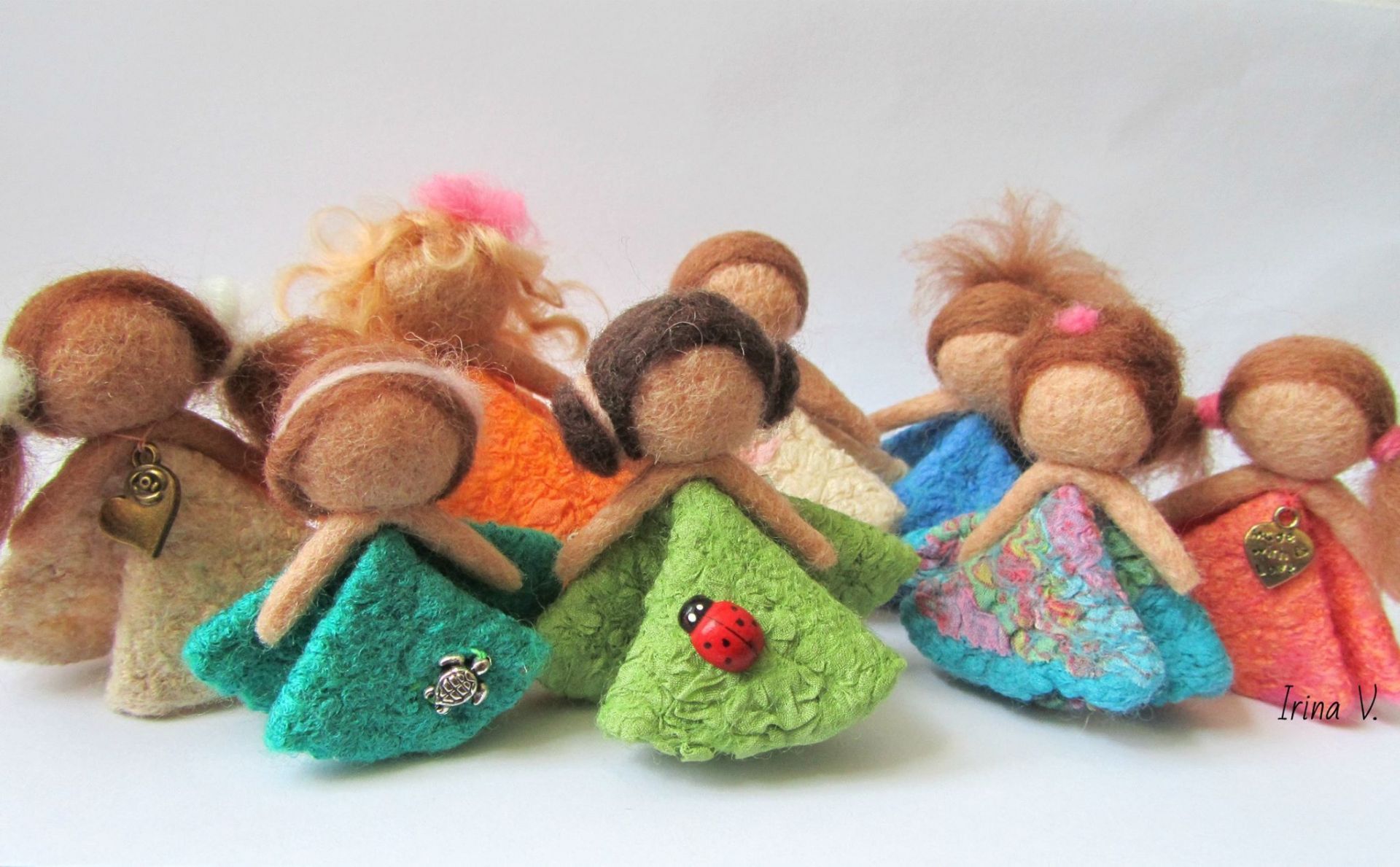 - Із часом зрозуміла, що хочу вдосконалювати свої робити, - продовжує майстриня. – Так у моїх фей з’явились крила. Далі я зробила балеринки в пачках, фей у формі квіточок. А ще з’явилась ідея зробити маленьку лялечку, щоб вона була завжди у сумочці. Це була лялечка-брошка. У ній поєднано сухе валяння і мокре. Платтячко – не тільки з вовни, я вже почала додавати туди натуральний шовк.
