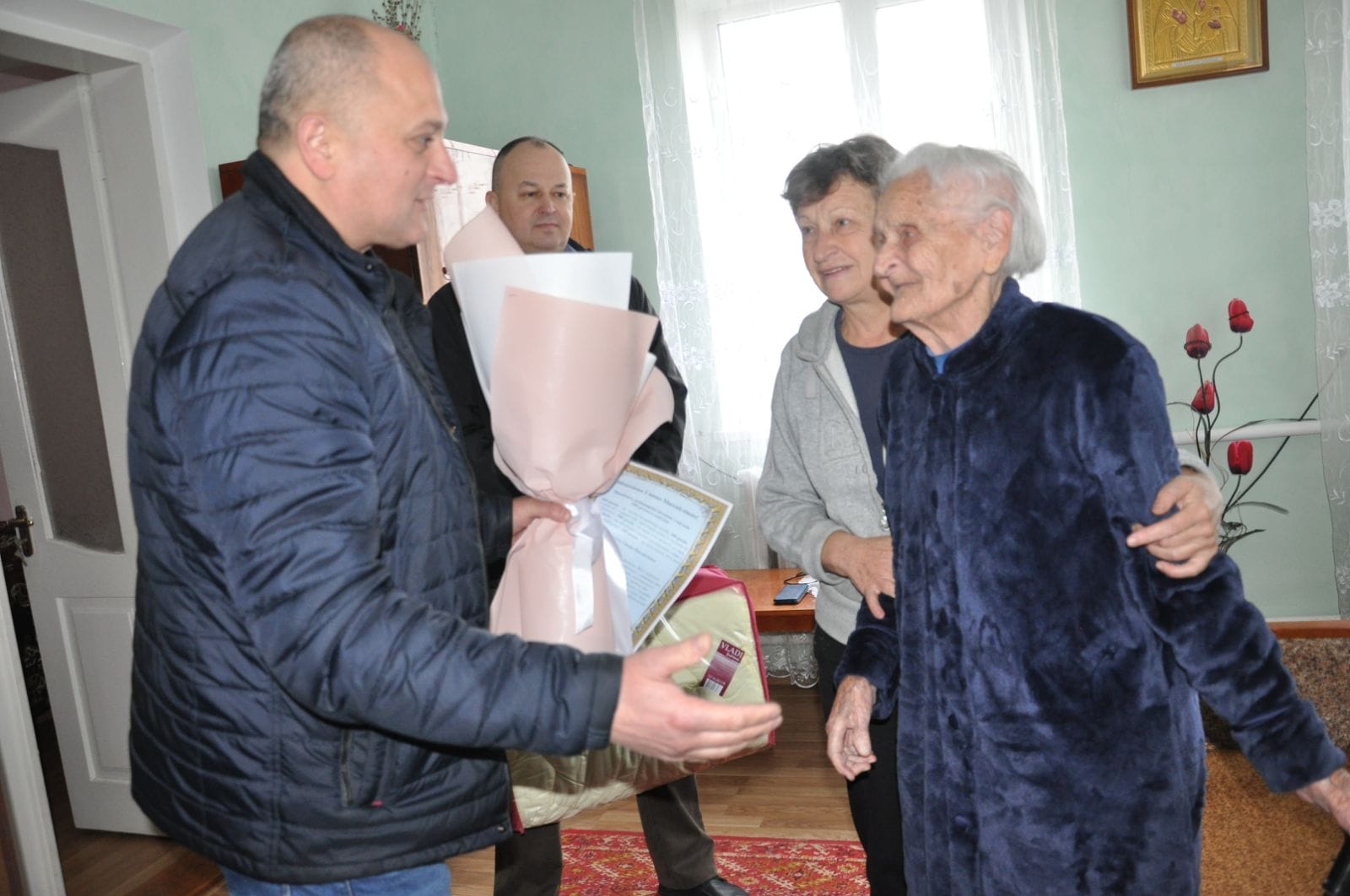 Завітали на свято до Ганни Михайлівни перший заступник Бучацького міського голови Василь Вонсяк та керівник Центру надання соціальних послуг міської ради Андрій Лисий. Гості вручили іменинниці подяку, подарунки та квіти і побажали міцного здоров'я, родинного затишку, миру та усіх благ.