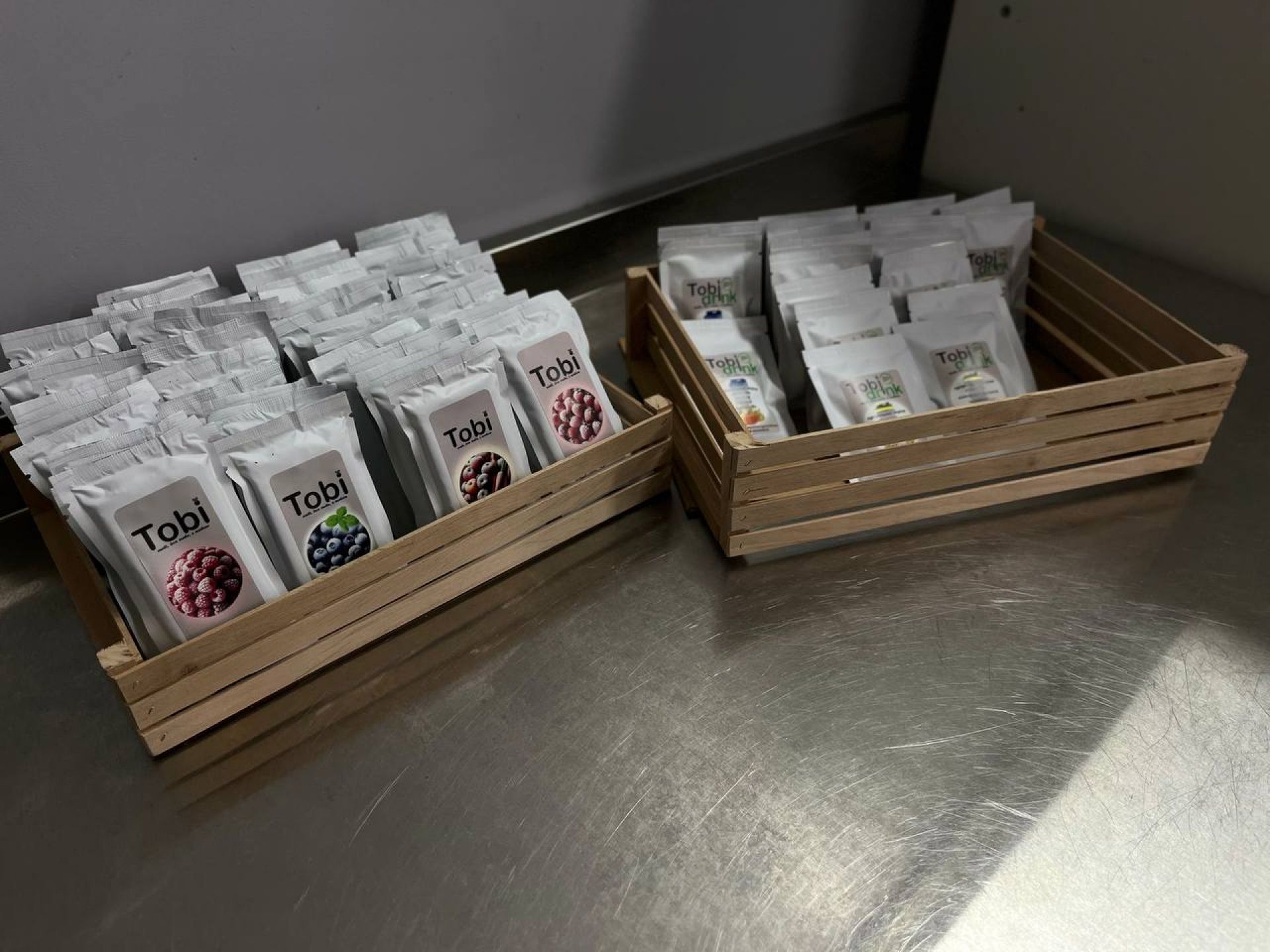 Наразі крафтове українське виробництво Tobi спеціалізується на виготовленні корисних сублімованих батончиків, овочів, фруктів та ягід, вітамінно-протеїнових коктейлів. В основі – домашня продукція з додаванням золотистого льону, пророщених зерен спельти, насіння чіа.