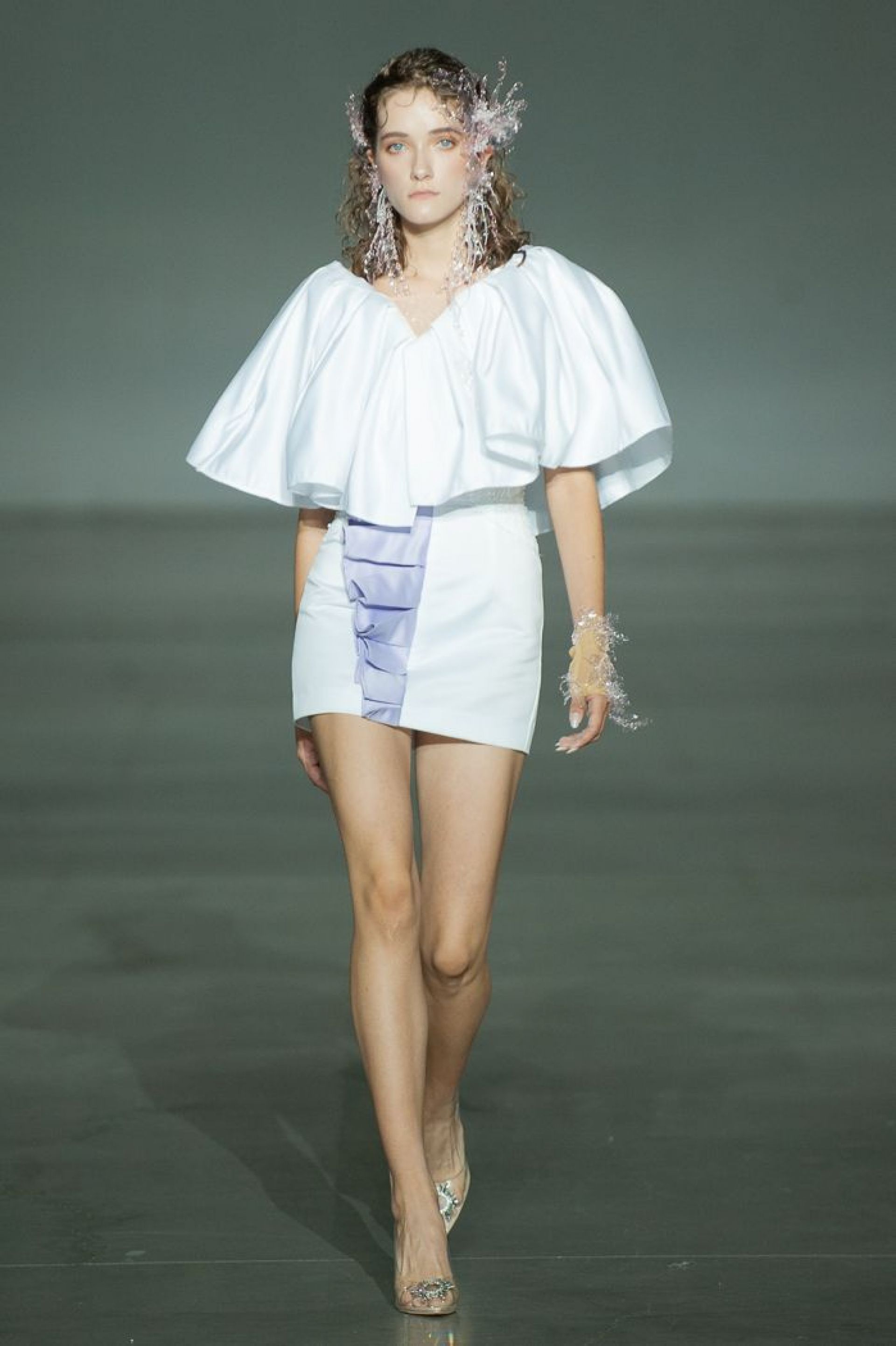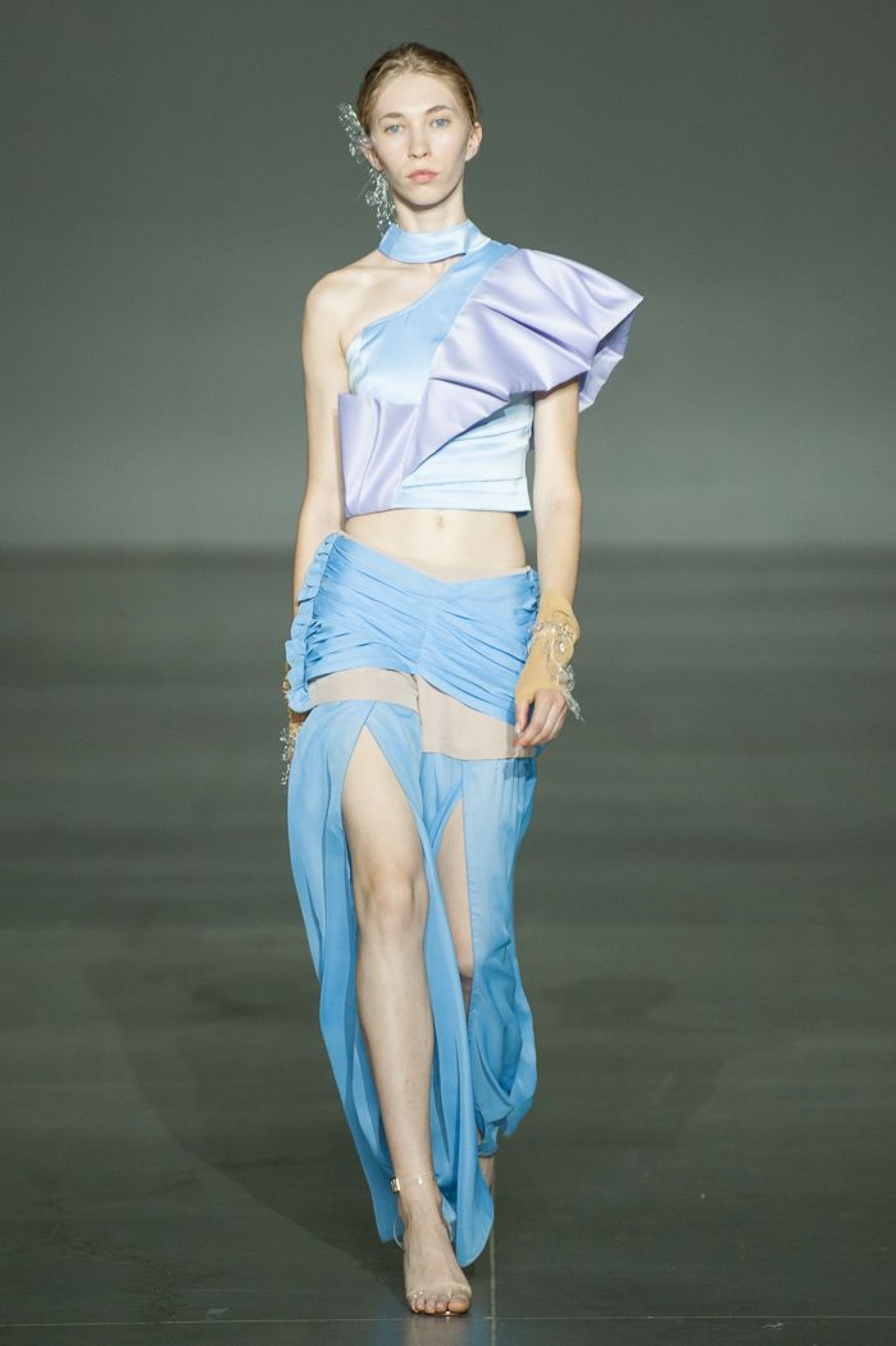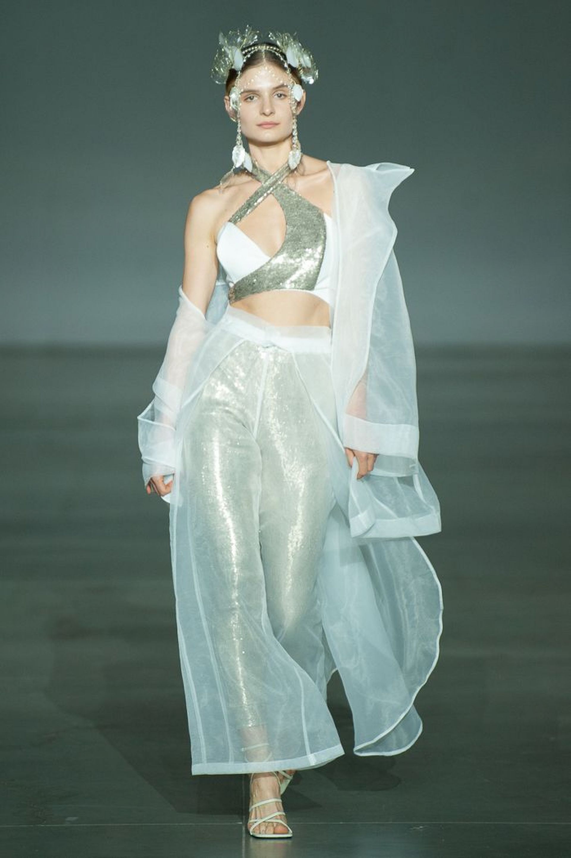 — Колекція складається із п’яти моделей, але на Ukrainian Fashion Week ми представили лише чотири. На п’яту модель в мене окремі бачення. 30 вересня планую ще один показ, там і представлю її, — розповідає школярка. — Концепцію ми придумували вдвох із Агатою. Усі аксесуари — це ручна оригінальна робота. Лише один із них вона виготовляла 20-40 годин. Основні тези колекції: легкість, прозорість та текучість. Ми хотіли передати максимальну легкість одягу, передати, що природа і людина нероздільні. В основі колекції – паєтка, тафта, шифон, органза та атлас.