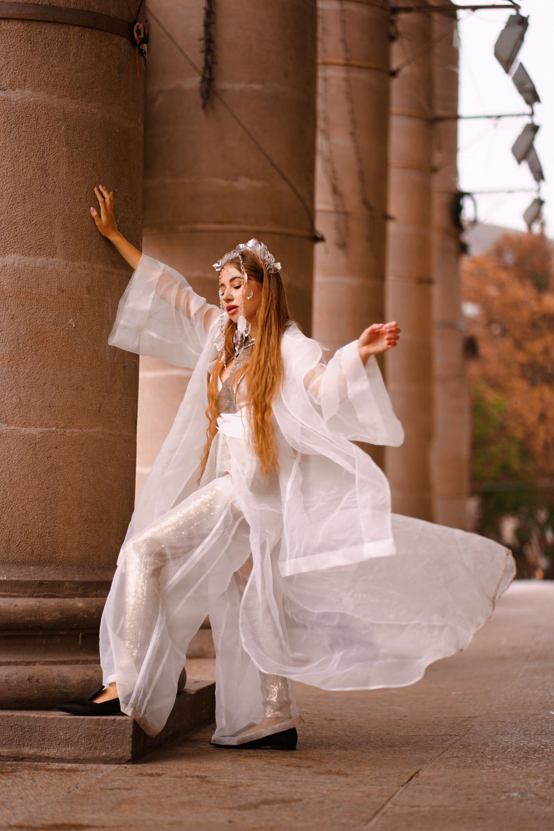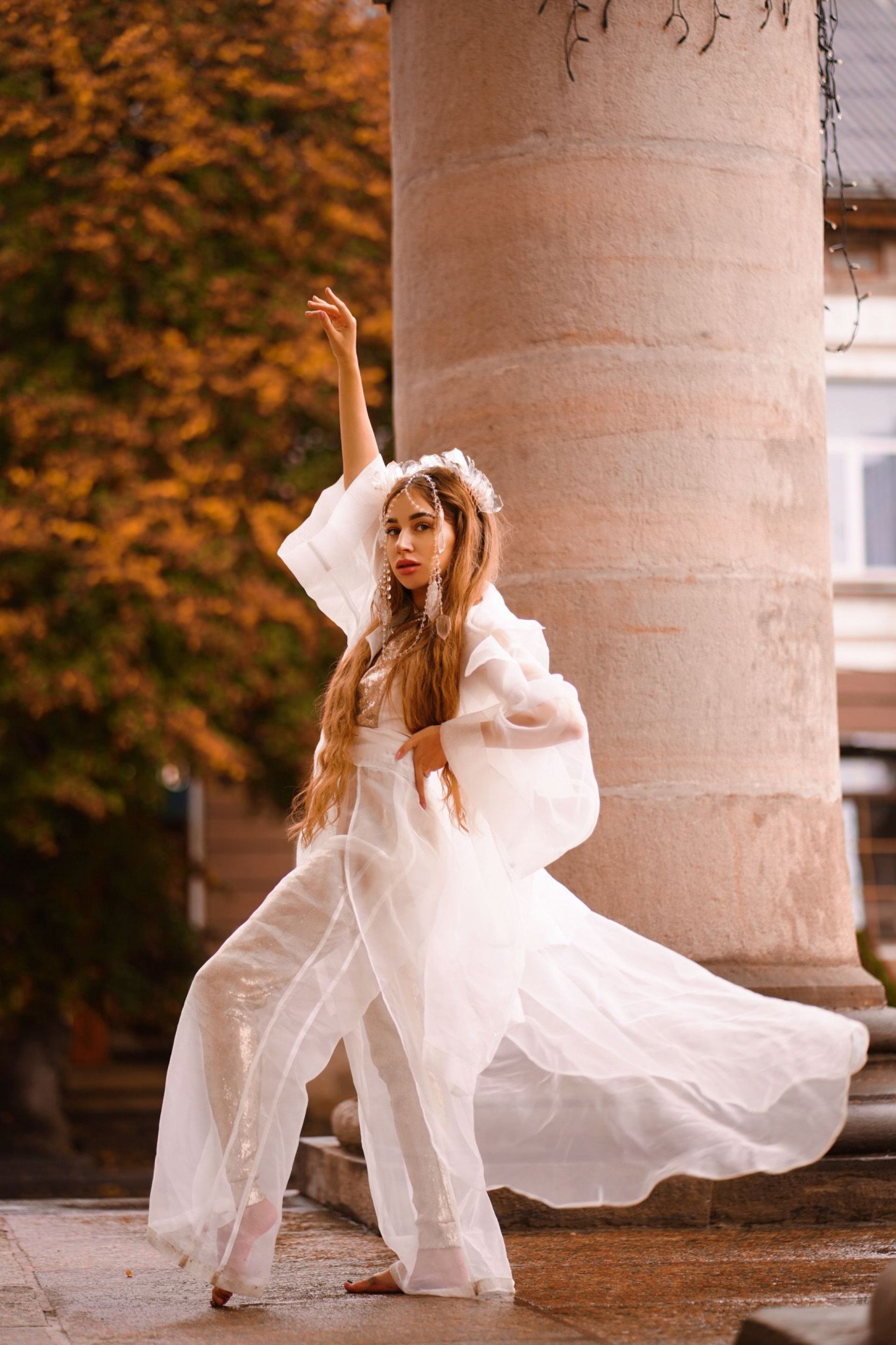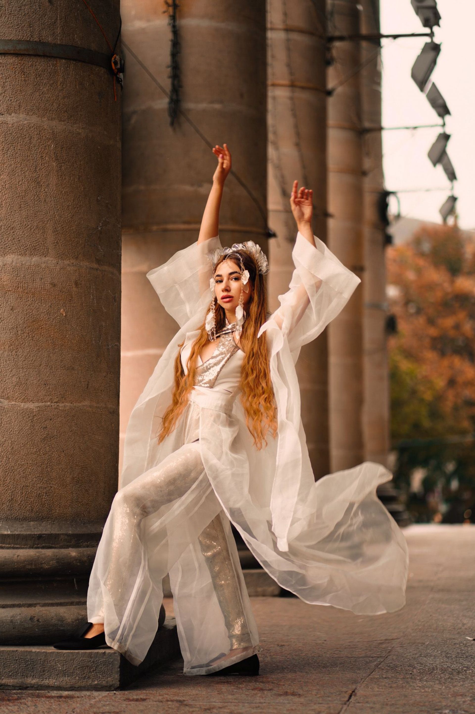— Колекція складається із п’яти моделей, але на Ukrainian Fashion Week ми представили лише чотири. На п’яту модель в мене окремі бачення. 30 вересня планую ще один показ, там і представлю її, — розповідає школярка. — Концепцію ми придумували вдвох із Агатою. Усі аксесуари — це ручна оригінальна робота. Лише один із них вона виготовляла 20-40 годин. Основні тези колекції: легкість, прозорість та текучість. Ми хотіли передати максимальну легкість одягу, передати, що природа і людина нероздільні. В основі колекції – паєтка, тафта, шифон, органза та атлас.