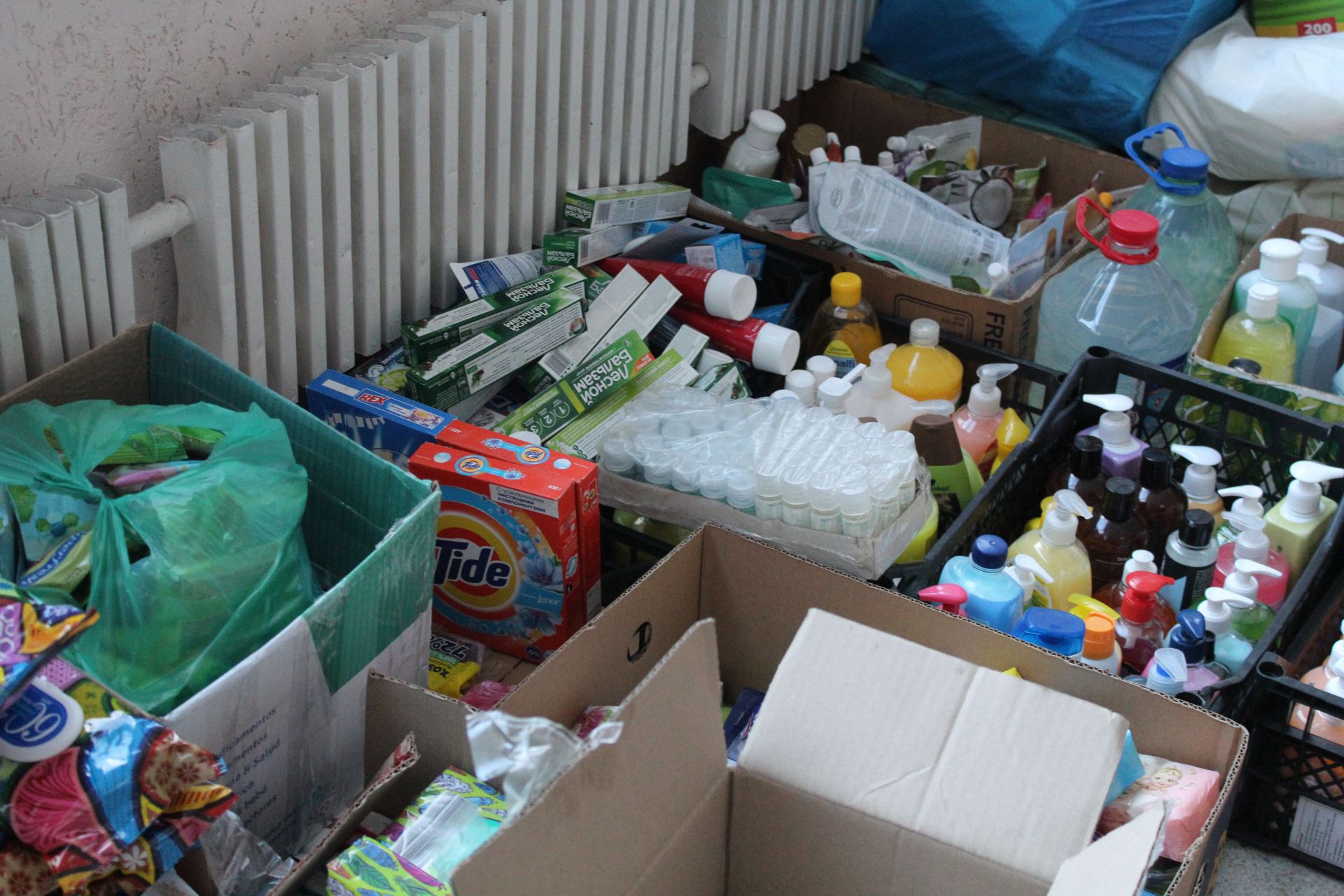 Хтось долучається до «переклички»: «То їх моя Аня несла, і каже: Мамо, я не донесу, їх тут так багато!». Пані Наталя пояснює, що допомагають на кухні і діти, учні 3-ьої школи. У цьому приміщенні, каже, нарешті розгорнули справу на повну і залучають усіх, хто бажає.