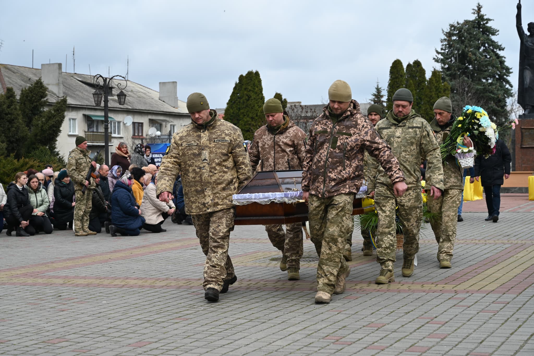 На центральній площі міста Ланівці сотні земляків прийшли віддати шану загиблому солдату, який заплатив найвищу ціну за свободу та мирне майбутнє України.
