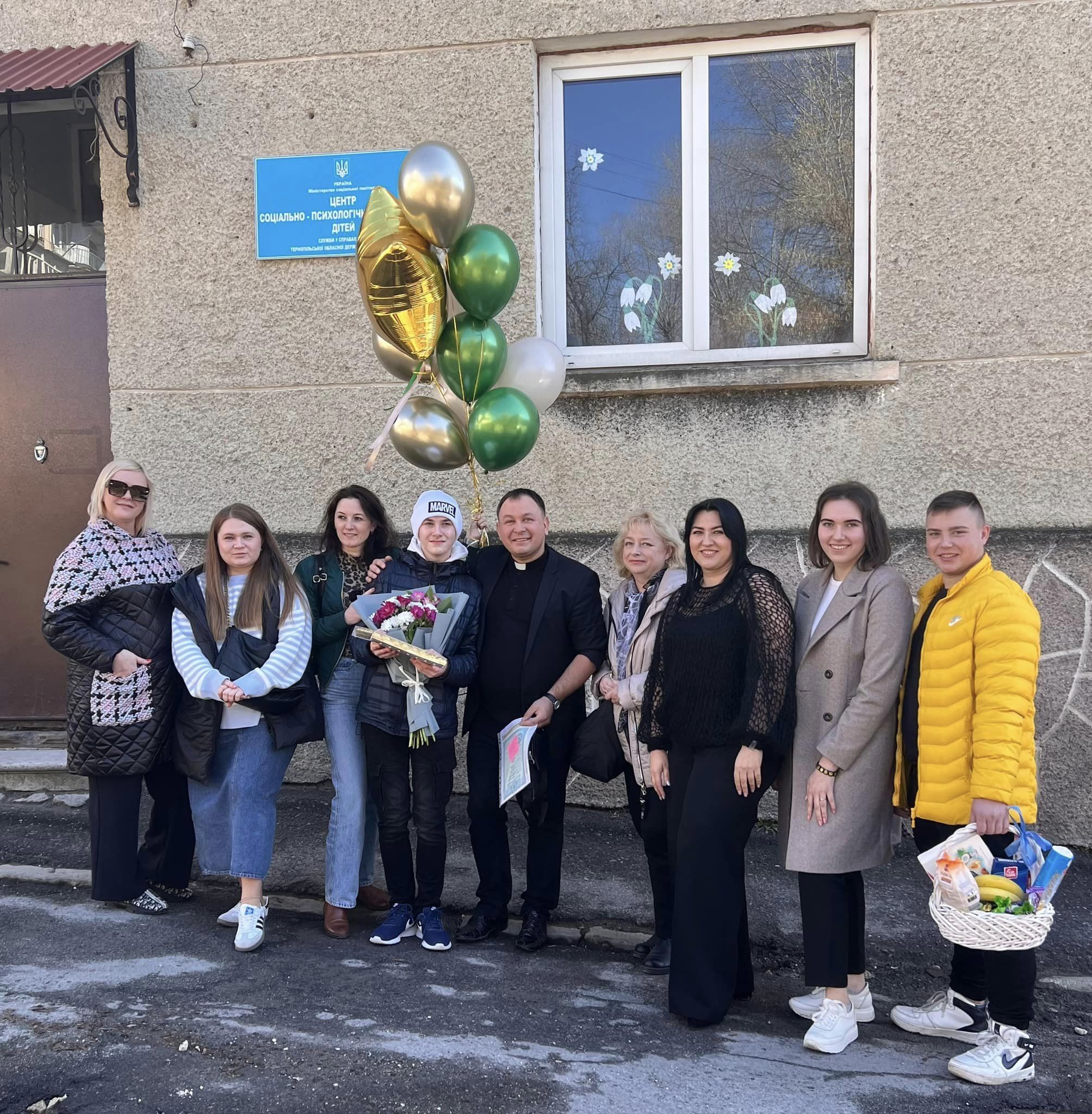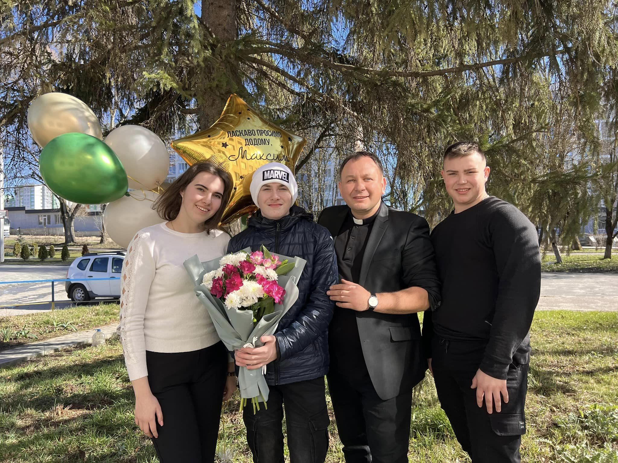 З повітряними кульками, квітами та солодощами Олексій Філюк та його друзі зустрічали 14-річного Максимка. Відтепер 29 березня – щасливий день для 14-річного хлопчика. Адже він нарешті зростатиме не у сиротинці, а у великому родинному колі.