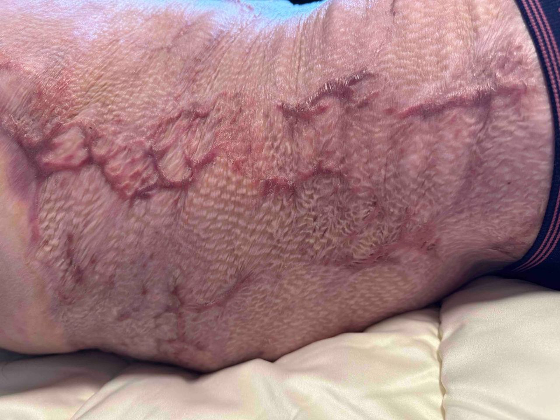– Спочатку лікарі проводили хірургічні втручання з м’язами, чистки, а вже далі пересаджували шкіру та робили пластичні операції на стегні. Бо мав глибоку рану до кістки, яка не загоювалася, тому медикам довелося підрізати м’язи та стягнути їх докупи. Щодо пересадок – орієнтовно 60–70% пересадили власної шкіри, решта – донорська. Так, було непросто, але лікарі завжди підтримували, передавали позитивний настрій, казали, що все обов’язково буде добре. Медицина у Бельгії на високому рівні. Наша родина дякує їм за все, що вони зробили, – розповідає Ігор Скибиляк.