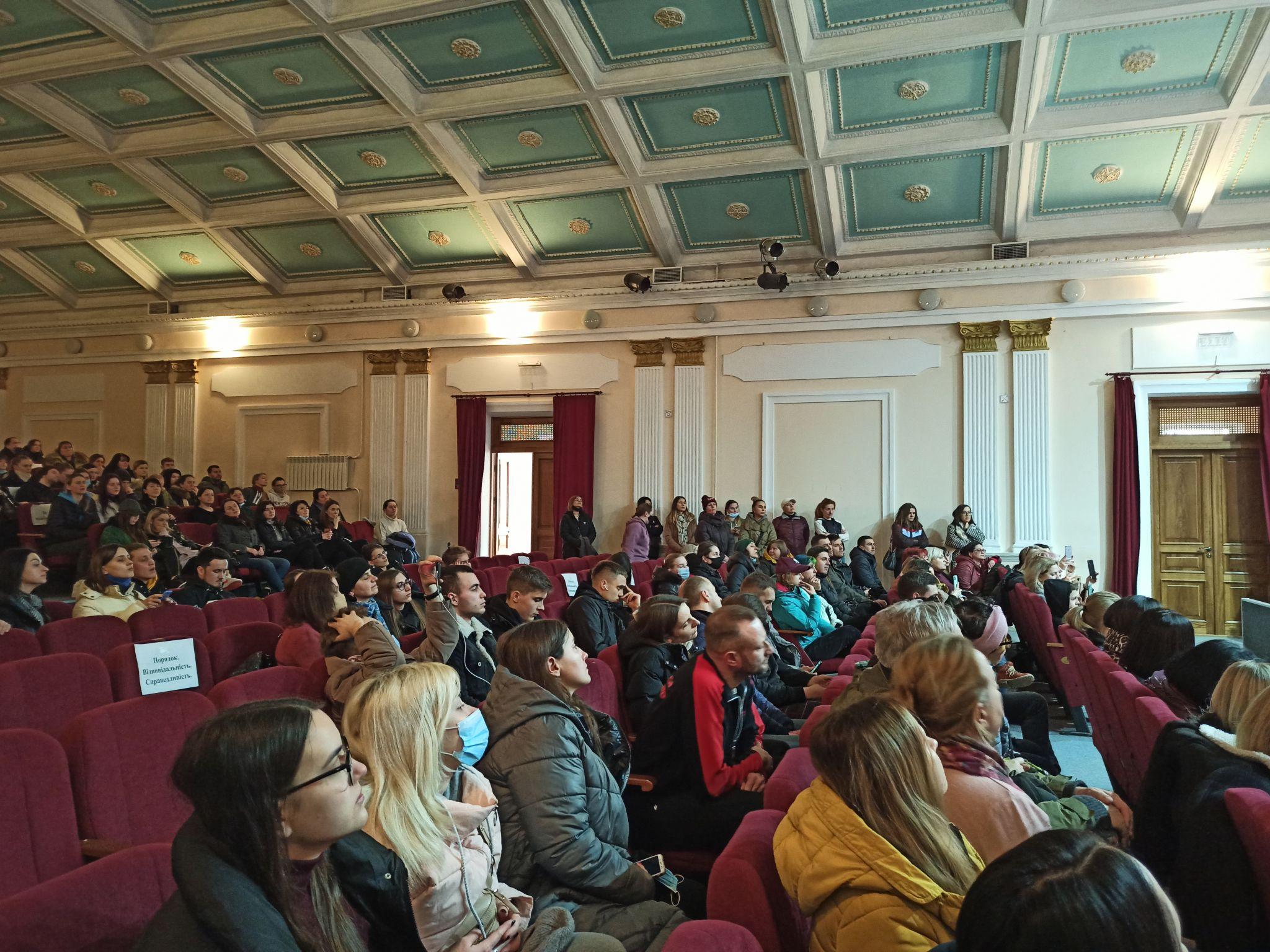 В залі на другому поверсі зібралось майже дві сотні тернополян: жінок та чоловіків різного віку.