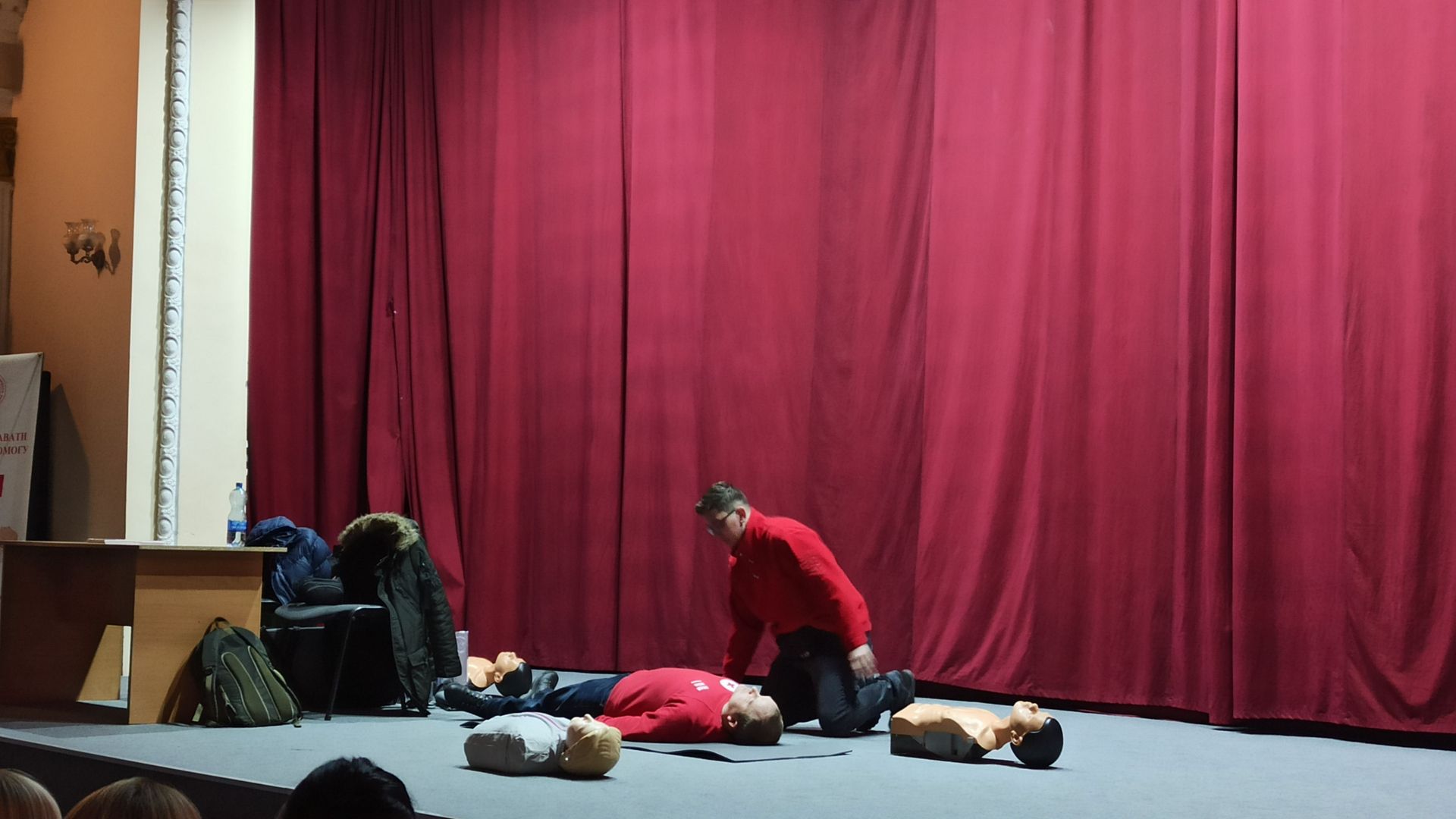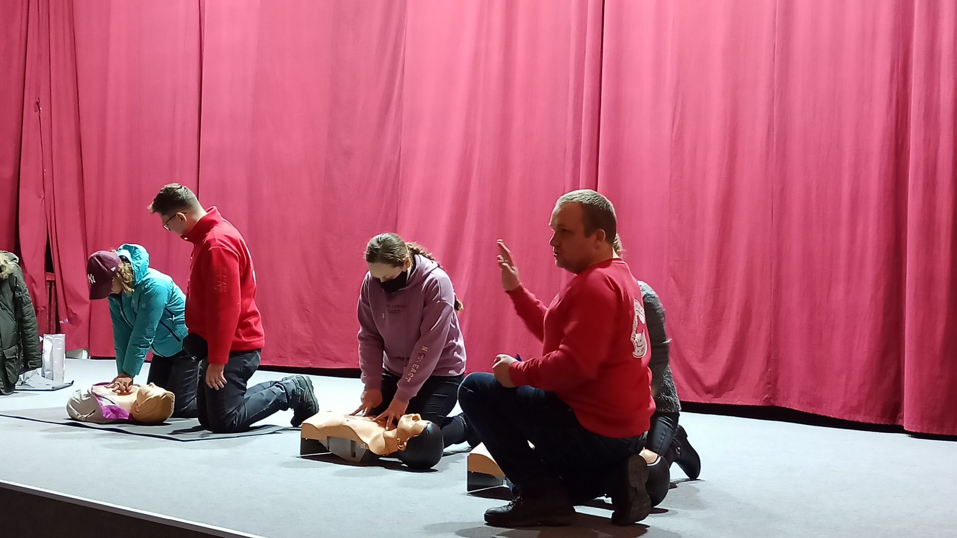 Медики в ігрових ситуаціях та на прикладі манекенів продемонстрували як підходити до потерпілого, робити перевірку дихання, проводити закритий масаж серця тощо.