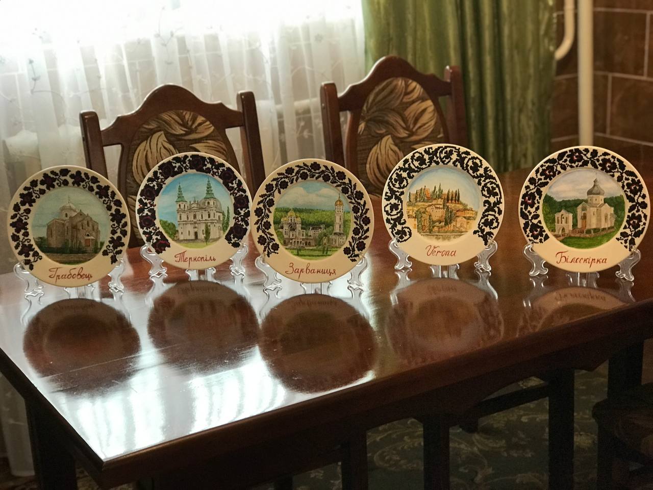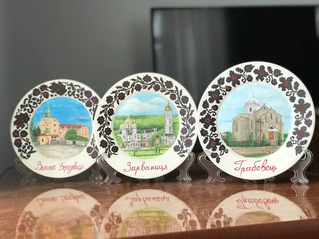 Кожна робота має спеціальну підставку, аби прикрасити нею інтер’єр. Наразі тарілки з авторським розписом Софії Демків можна побачити як в різних містах України, так і за кордоном. Зокрема, частину робіт вона відправила делегації, яка вирушала до Польщі.