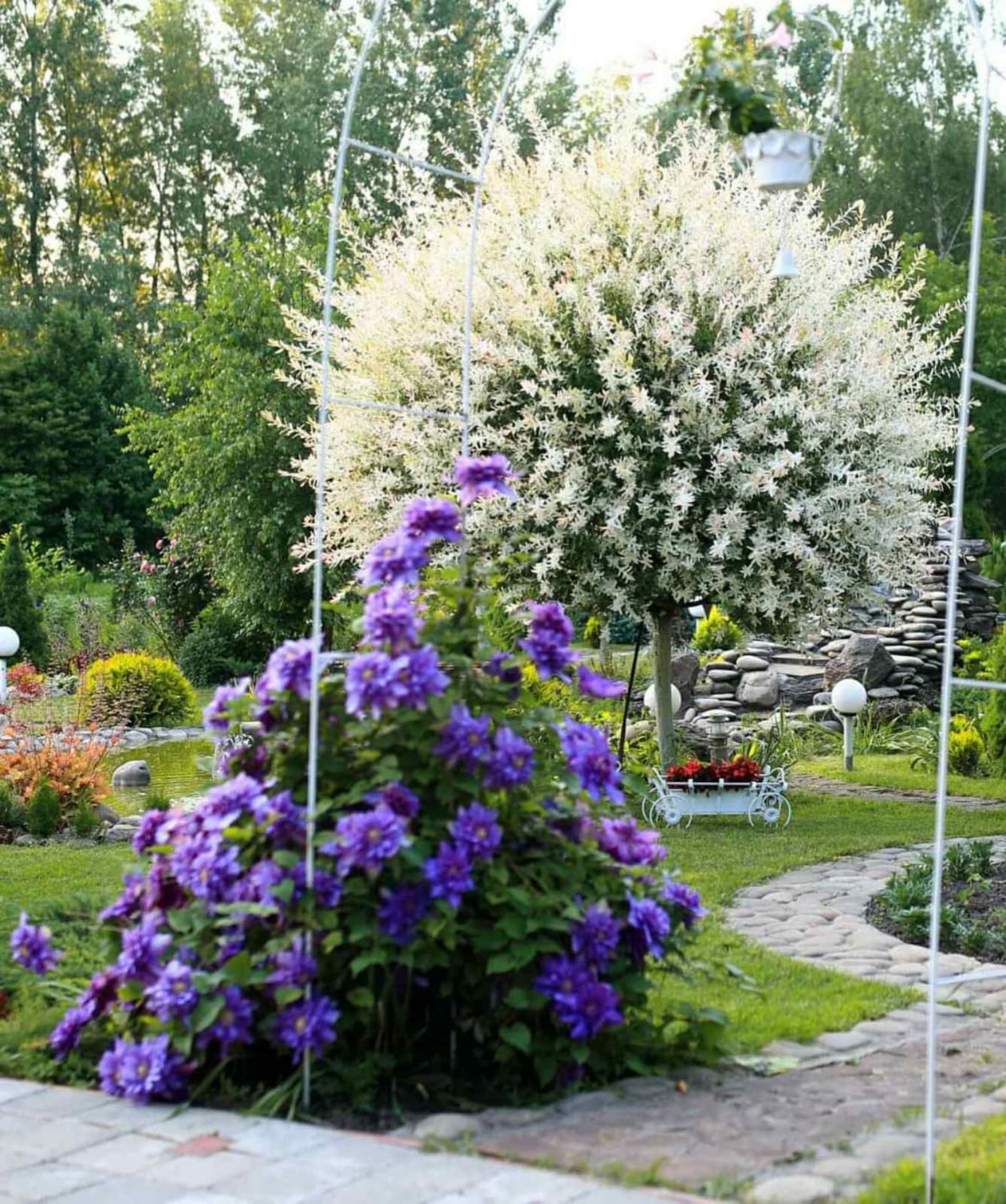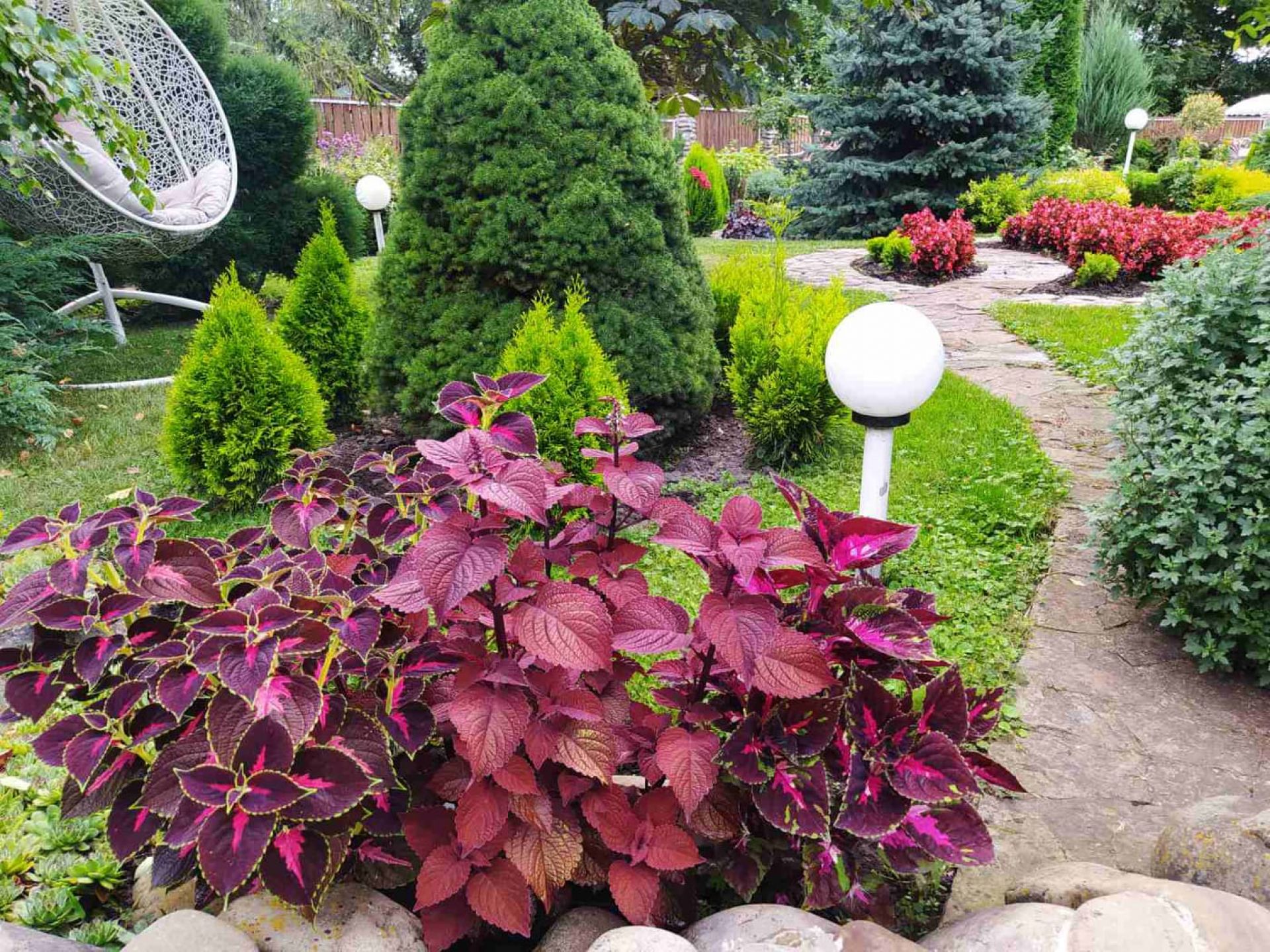 - Я обожнюю хвойні. Голубі ялинки дуже люблю. У мене їх десь 15, - продовжує співрозмовниця. - Усі рослини, навіть ті, що не квітнуть, підбираю по кольорах. Є декоративна слива з вишневими листками, барбариси - з червоними листками, клен-фламінго - білий з рожевим.
