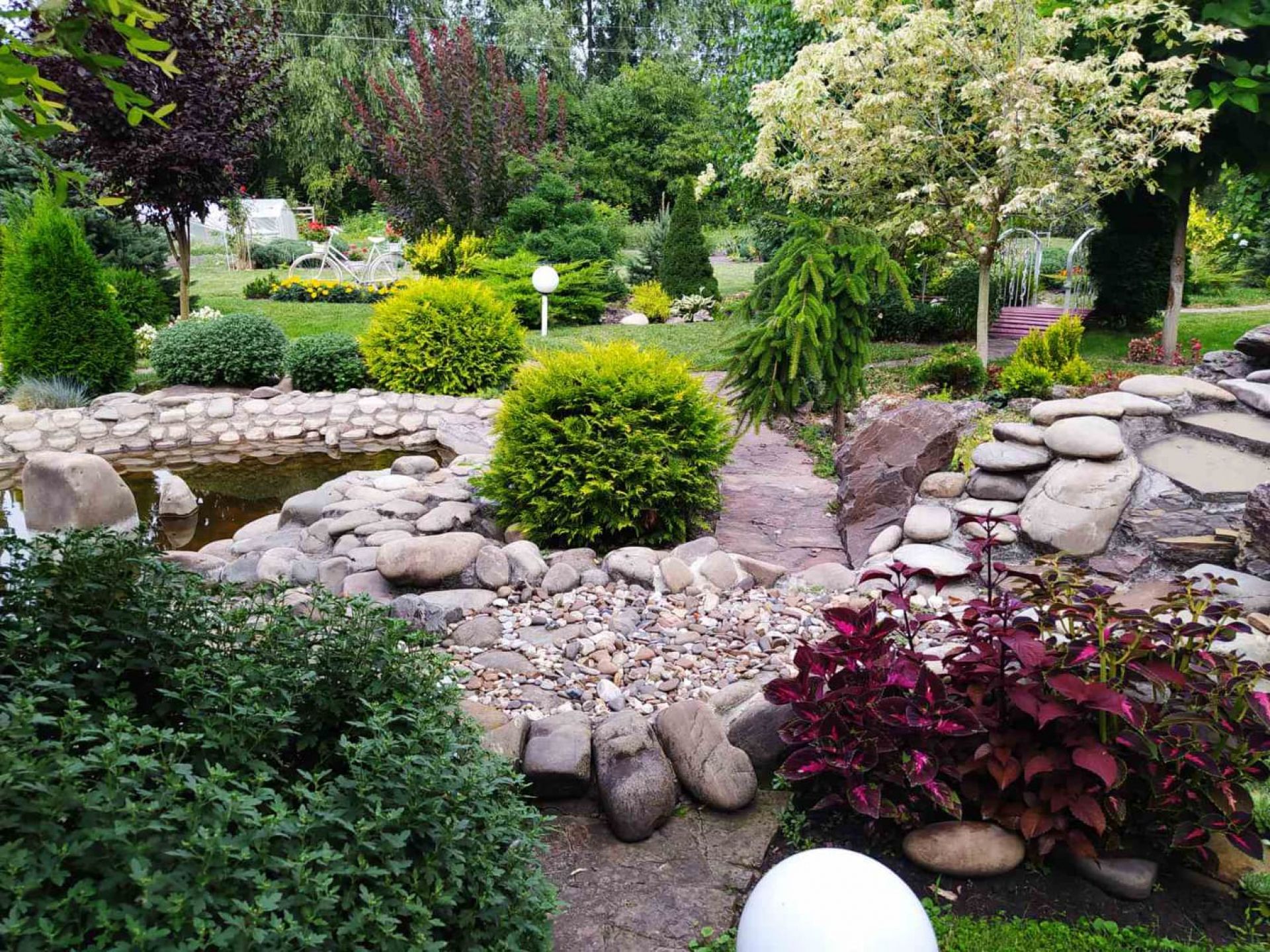 А далі - політ фантазії. Тепер у саду красуються клумби, гамаки, лавочки та навіть озерце.