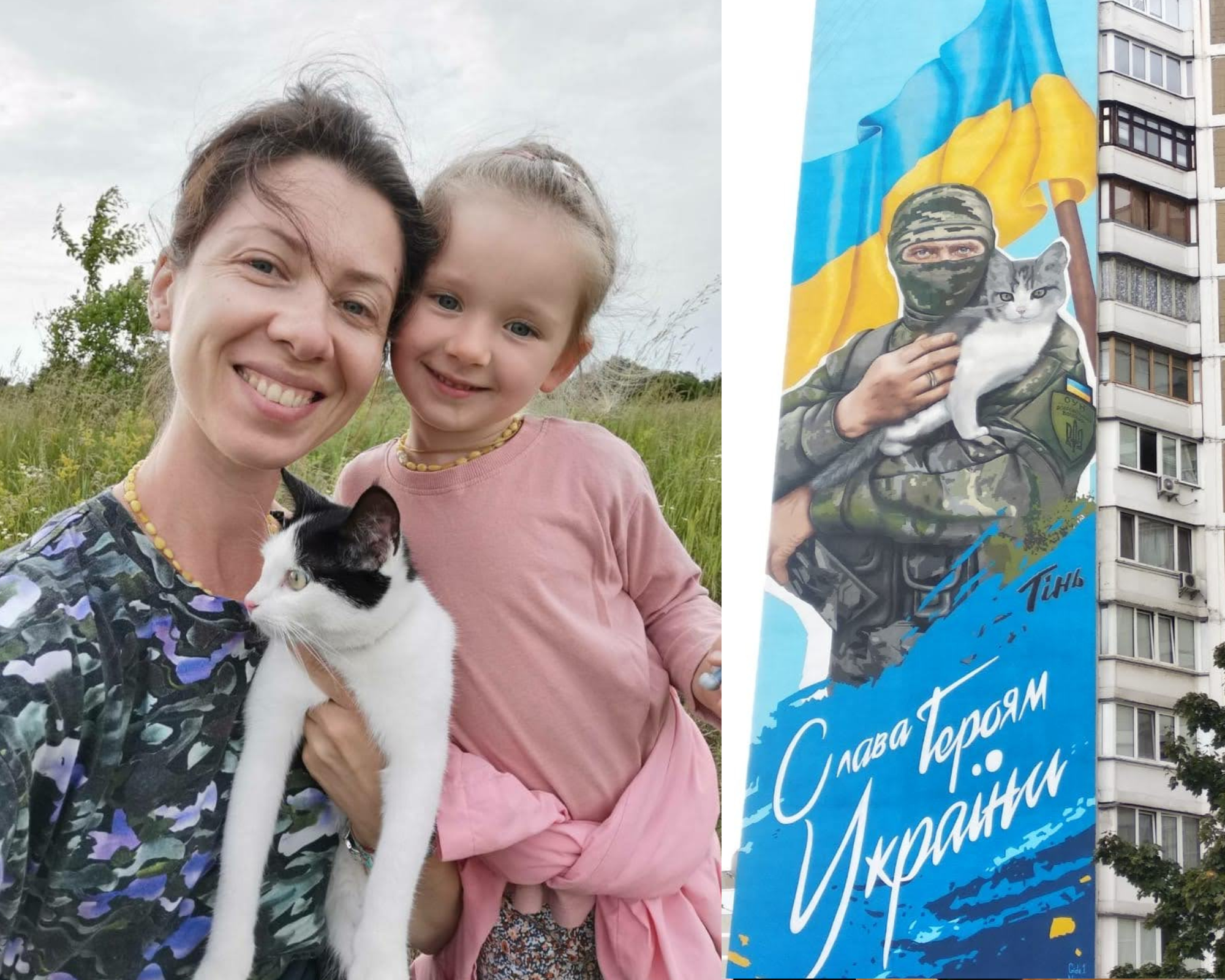 У Києві є мурал, де зображений військовий з котиком, і донька, проїжджаючи повз, завжди каже: «Це — тато з Мусею». Кішка особлива — не боїться навіть звуків шахедів, які часто чутно в столиці.