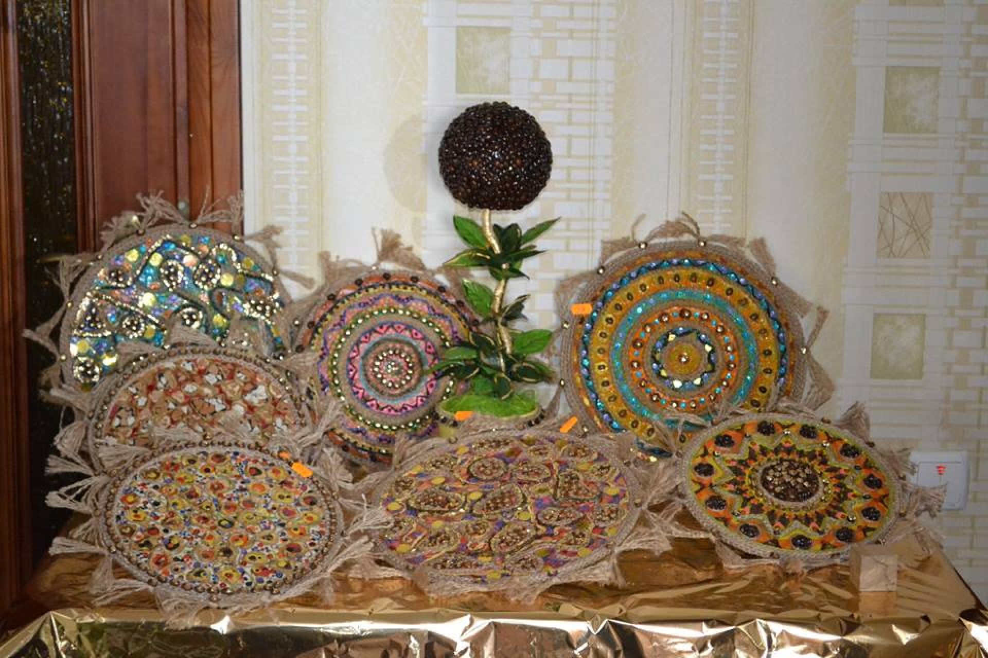 Мандали – декоровані тарілки-панно круглої форми почала виготовляти п’ять років тому, коли побачила їх на одному сайті. Першу зробила за схемою. Всі інші – це власні експерименти пані Наталії із кольором та матеріалами.