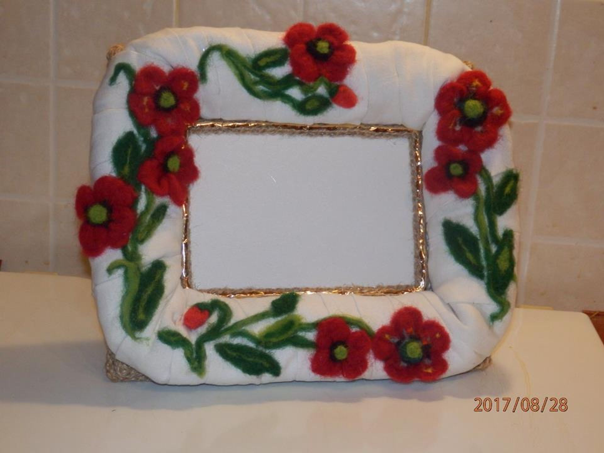 Щоразу жінка удосконалює вже напрацьовані та пробує нові техніки хенд-мейду. Наприклад, фелтинг – валяння із вовни. З-поміж її авторських фоторамок є одна, декорована маками із вовни на білому льоні.
