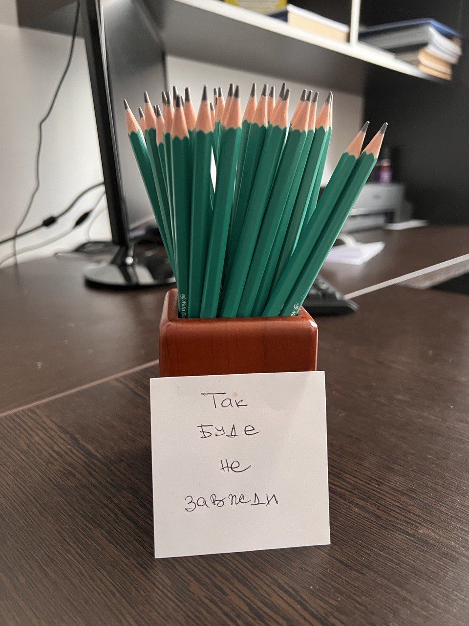 — У всьому (посміхається — прим. авт.). Ось дивіться, маю для нотаток кольорові олівці (показує — прим. авт). А попередній директор залишив мені ось такі зелені. І я їх зберігаю. А ось ще записка, яку мені залишив Анатолій Васильович: «Так буде не завжди». А я кажу йому у відповідь: «Буде краще».