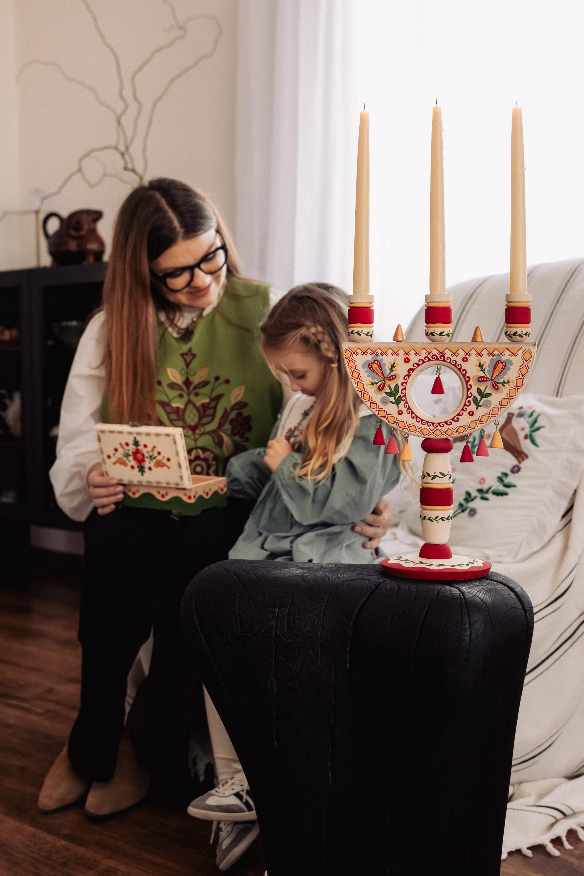 У сучасних трисвічниках пані Ірина поєднує традиції і сьогодення. У декорі вона використовує елементи, натхненні орнаментами: геометричні символи, стилізовані рослинні мотиви, знаки сонця, дерева життя, традиційні кольори та ритмічні візерунки. А ось що відомо про мальованки?