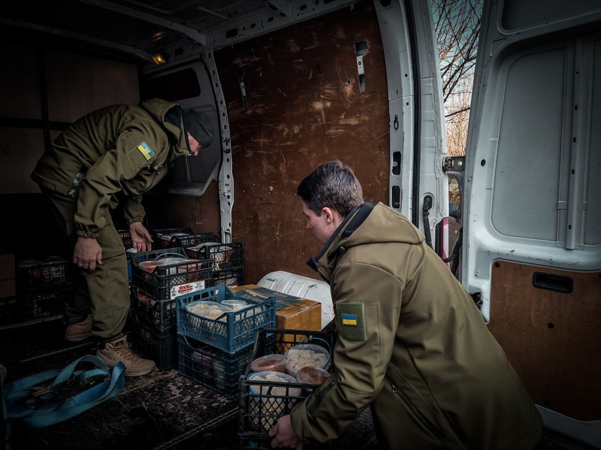 У перші вісім місяців російського вторгнення, зауважує Володимир, наші хлопці на фронті найбільше потребували продуктів й деякої амуніції. Натомість на деокупованих територіях люди не мали взагалі нічого. Магазини не працювали, не було де придбати харчі, засоби гігієни, одяг, медикаменти тощо. Все це до них везли волонтери.