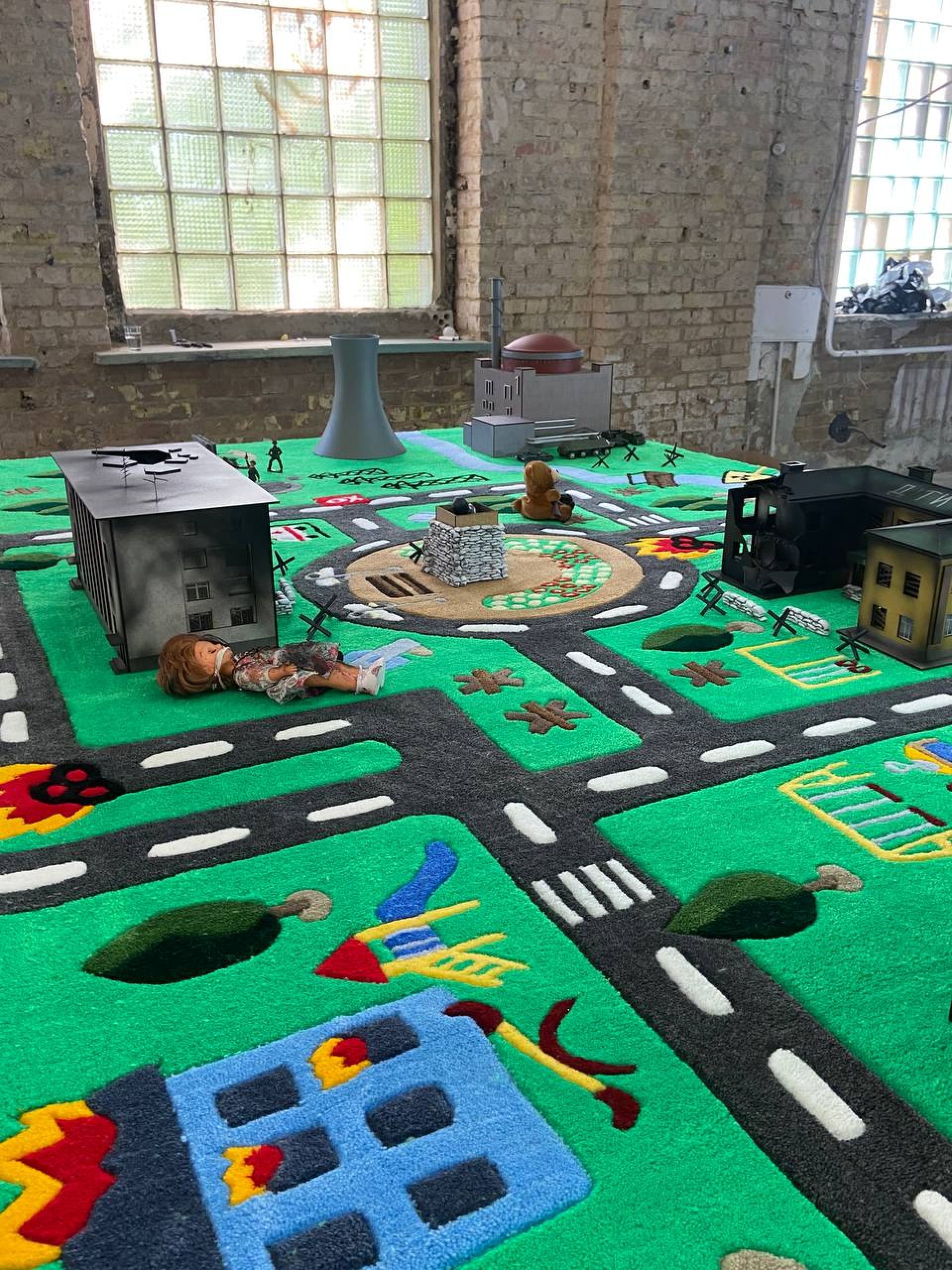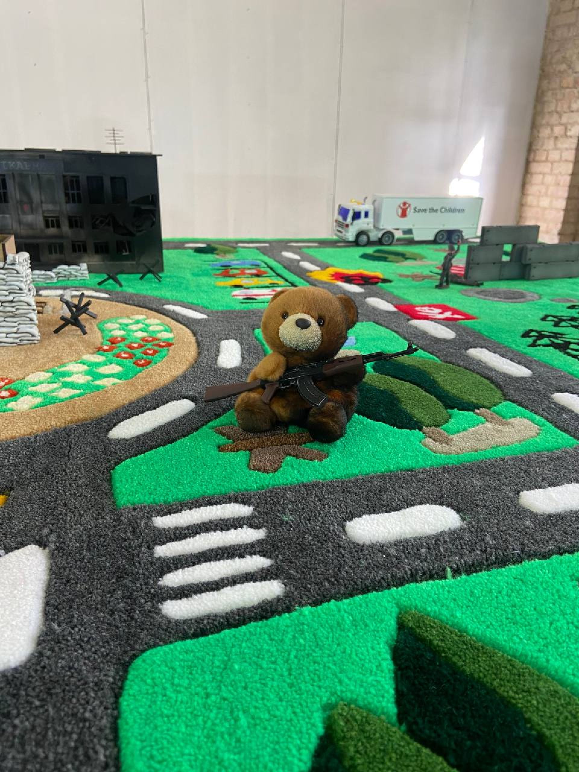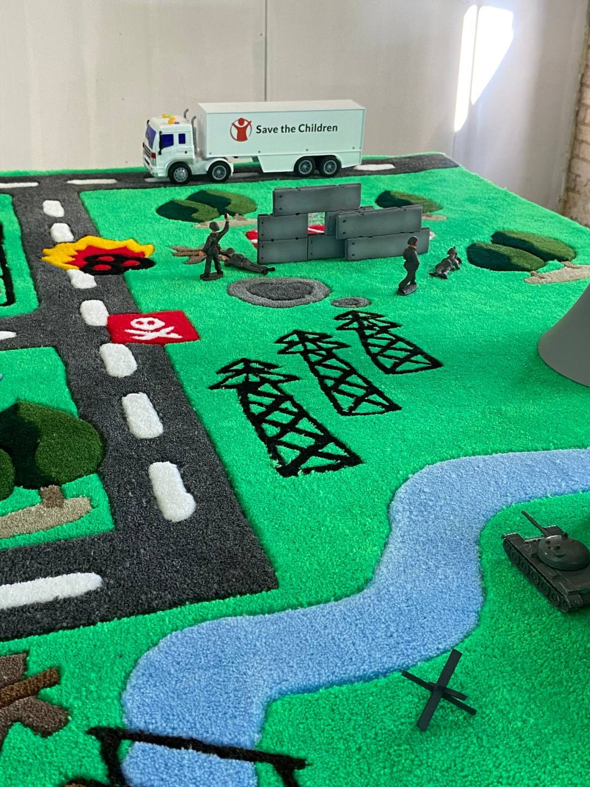 Найбільший з усіх килимів майстриня виготовила для організації Save The Children Ukraine. Виріб має назву «Сучасні реалії дитинства» і демонструє, що діти у юному віці змушені швидко дорослішати через повномасштабну війну. Василина зробила килим за дуже короткий термін – всього 11 днів. Додає, що замовлення такого масштабу і за мінімальний час жоден тафтер в Україні не погодився би виконати за жодну суму. А вона ризикнула, хоч і боялась, що не впорається. Проте, понад усе хотіла, аби про долю наших дітей дізналися в усьому світі, адже килимок «полетів» у Генштаб ЄС в Брюсселі.