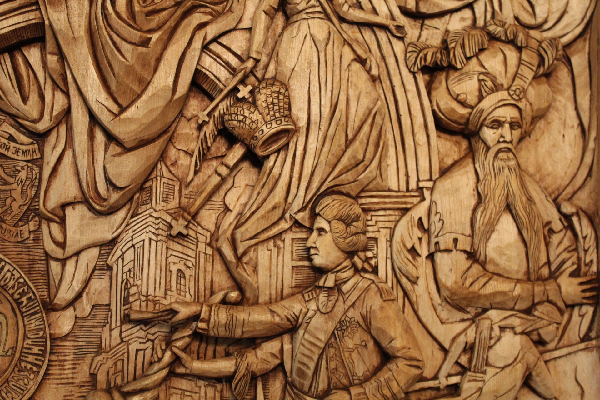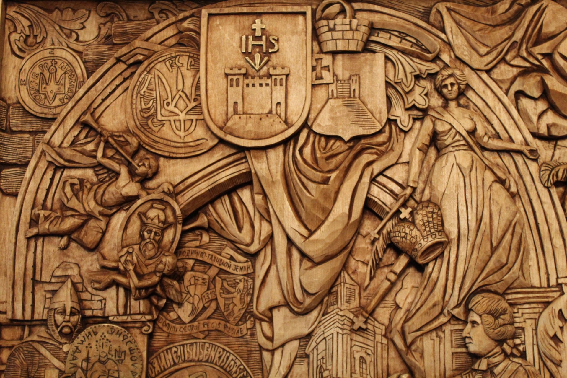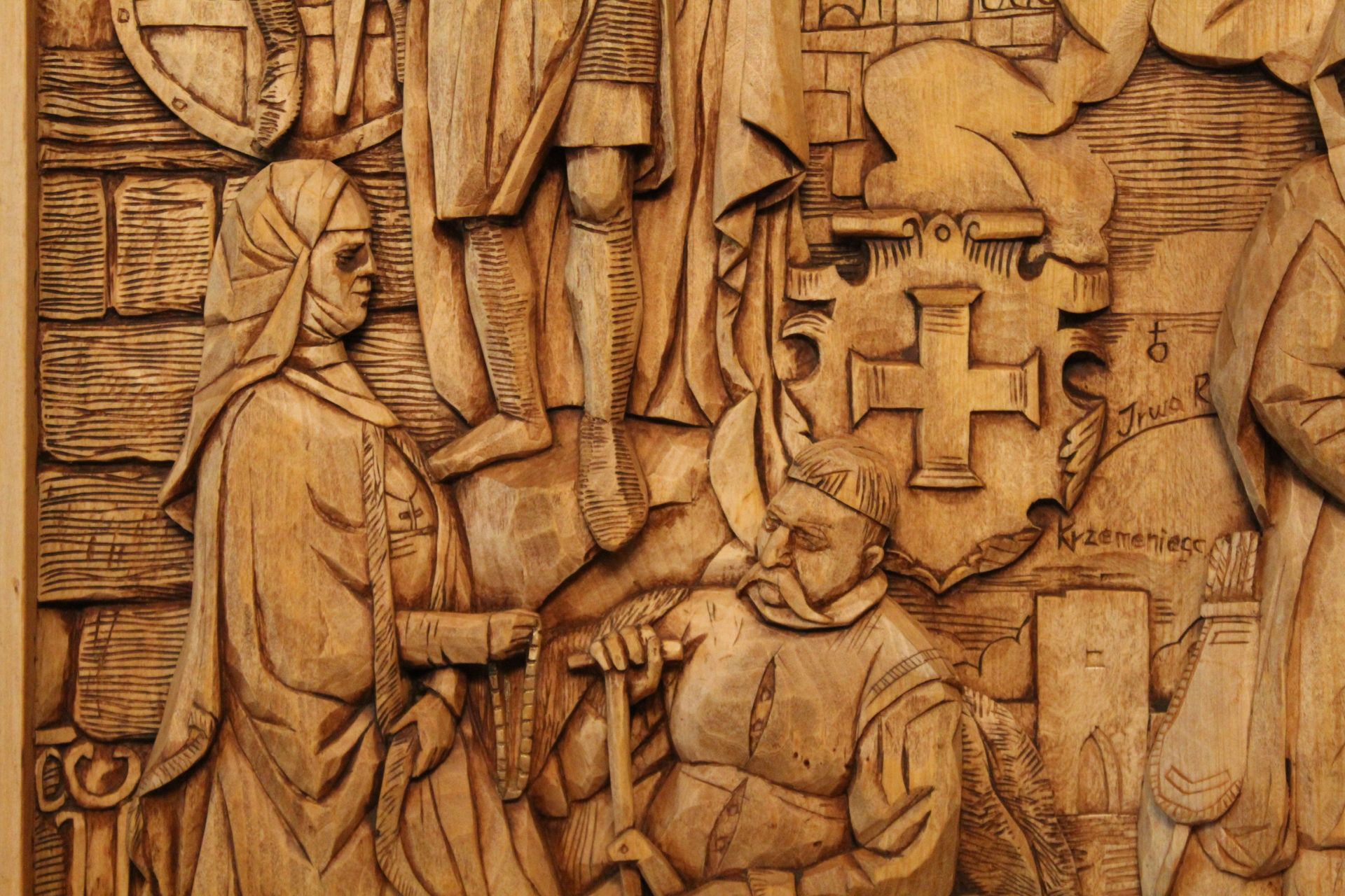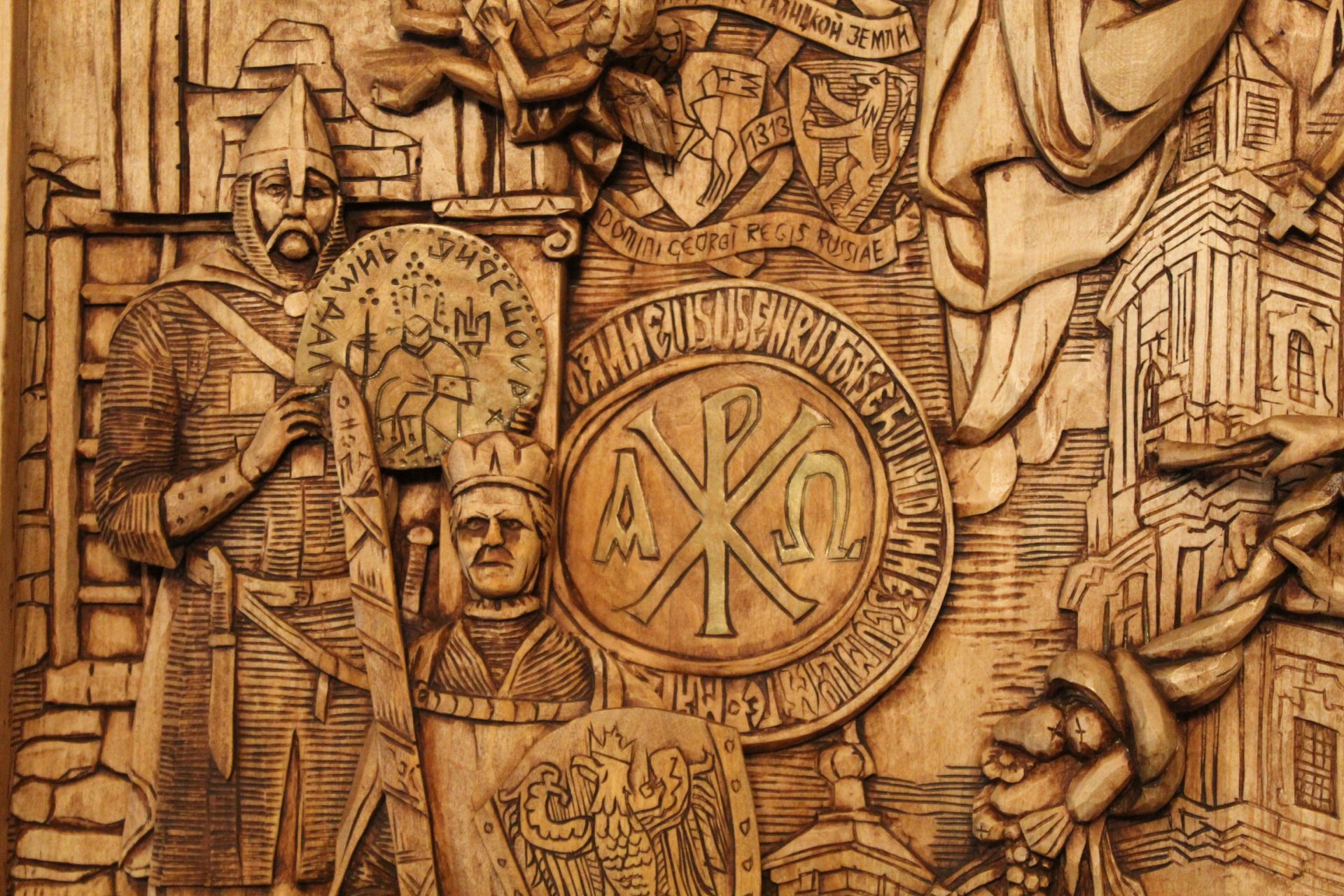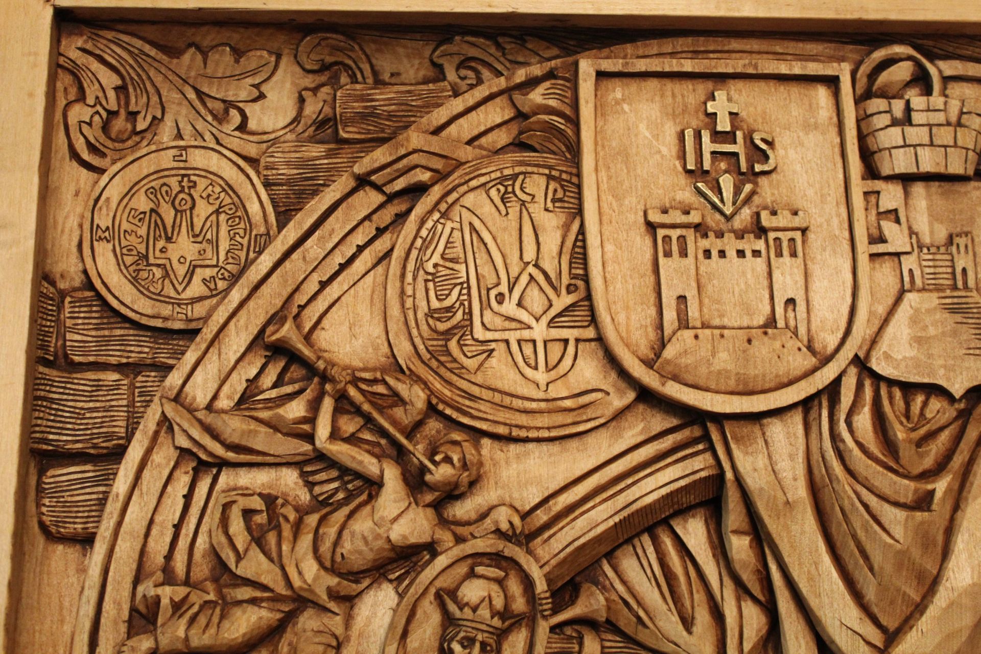 Напередодні війни у різьбяра виникла ідея створити триптих, який би поєднав події, атрибути й історичні постаті, що вплинули на сьогодення Кременця. Наразі готова тільки перша частина виробу, але вона дійсно вражає!