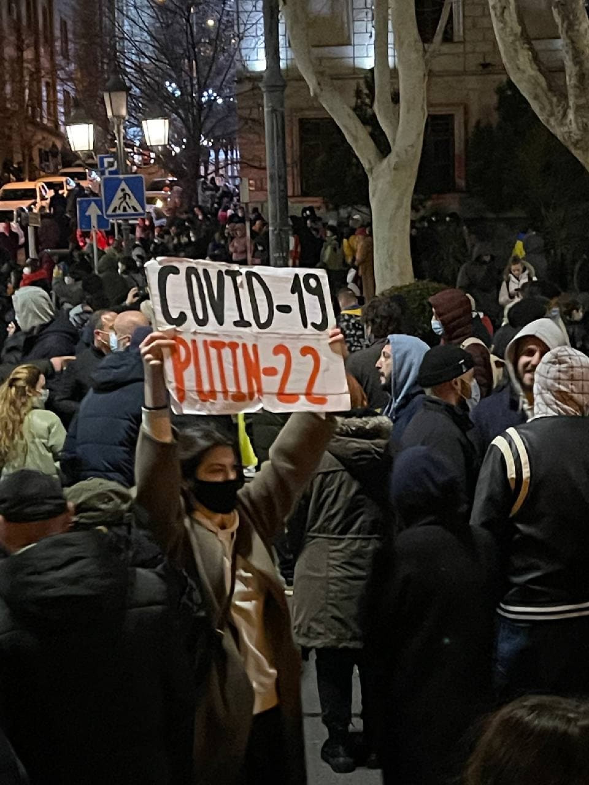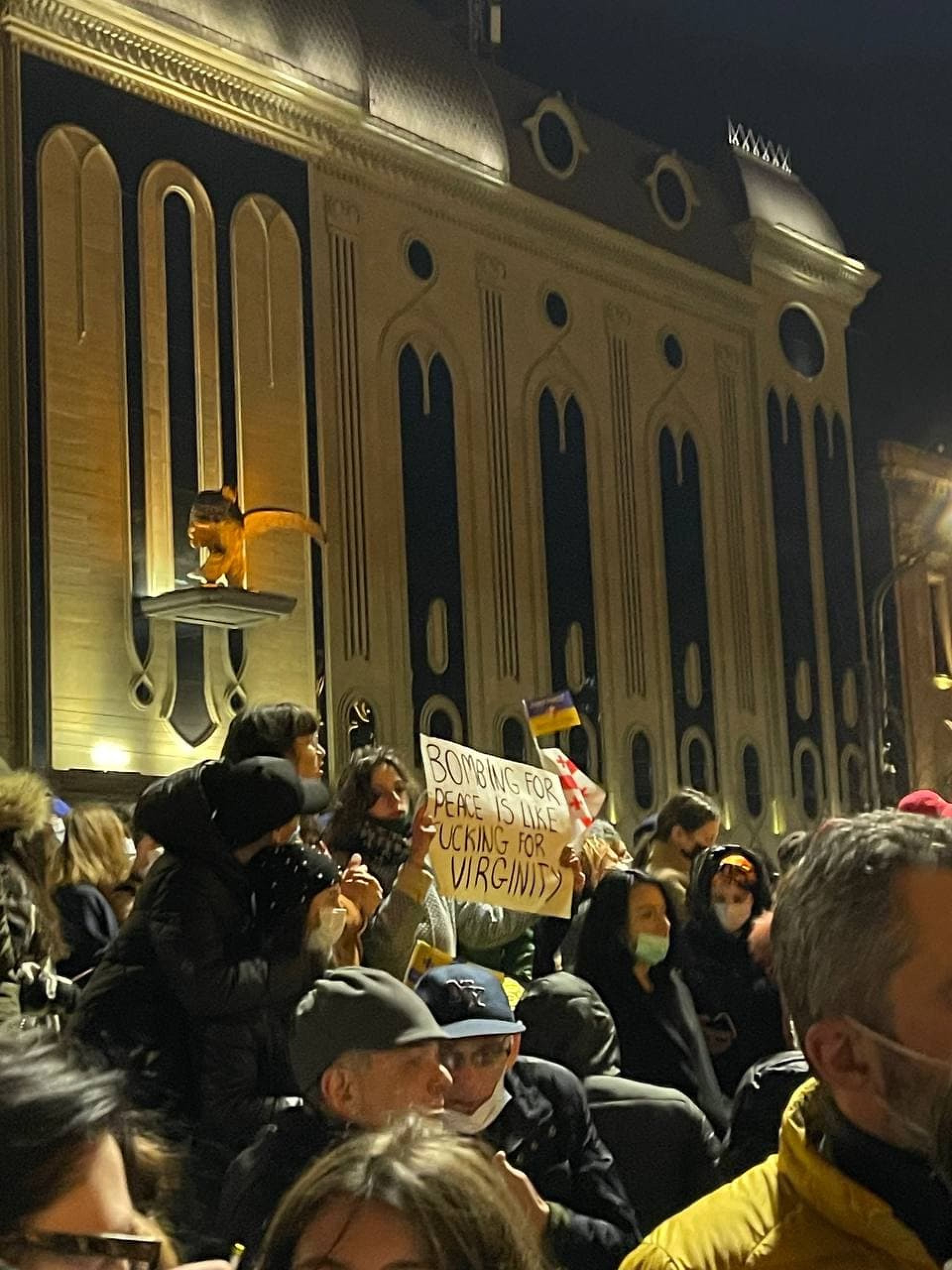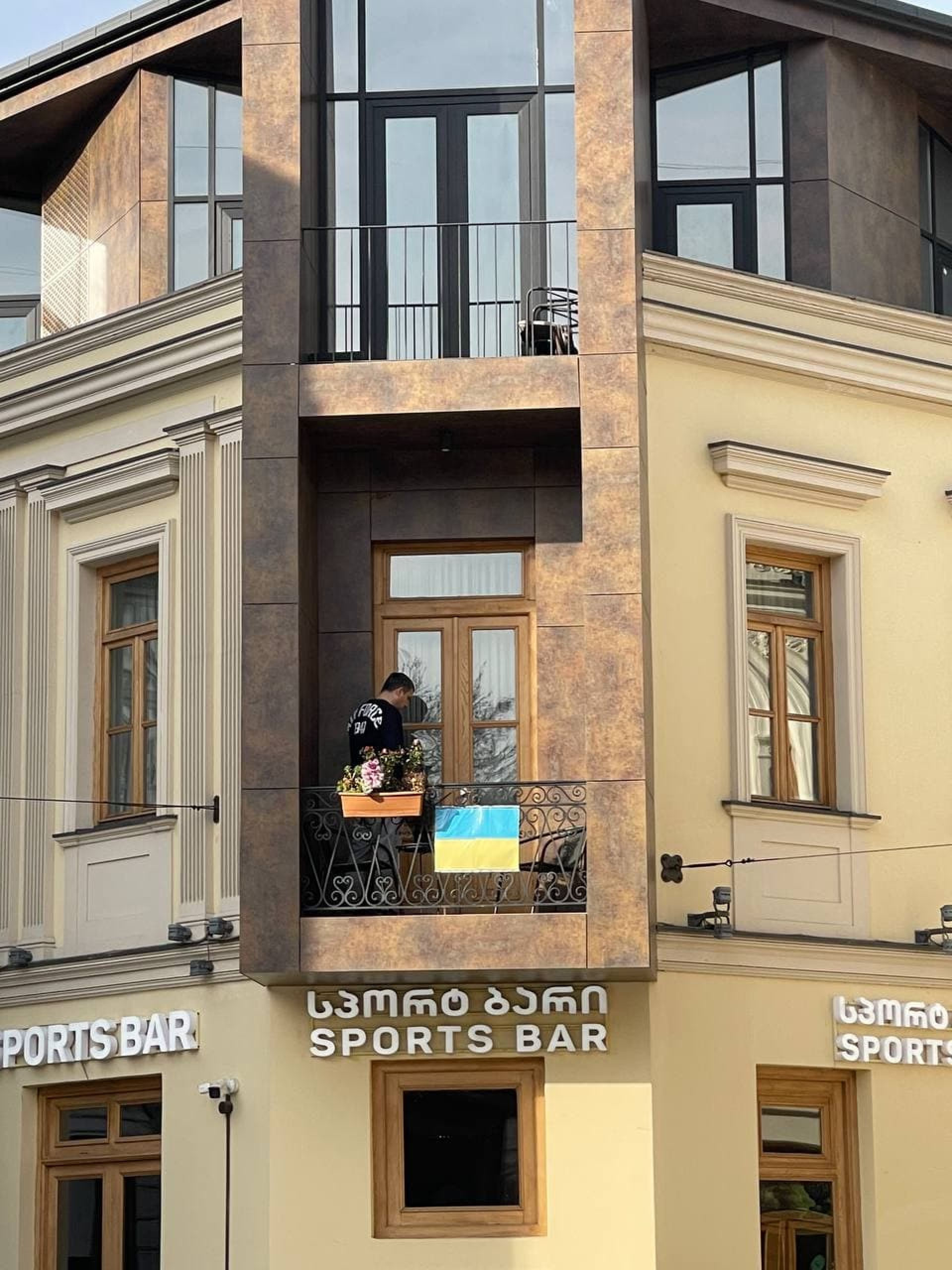 Так, на вулиці Тбілісі виходять сотні людей з Українськими прапорами та символікою, плакатами проти війни та засуджують дії РФ.