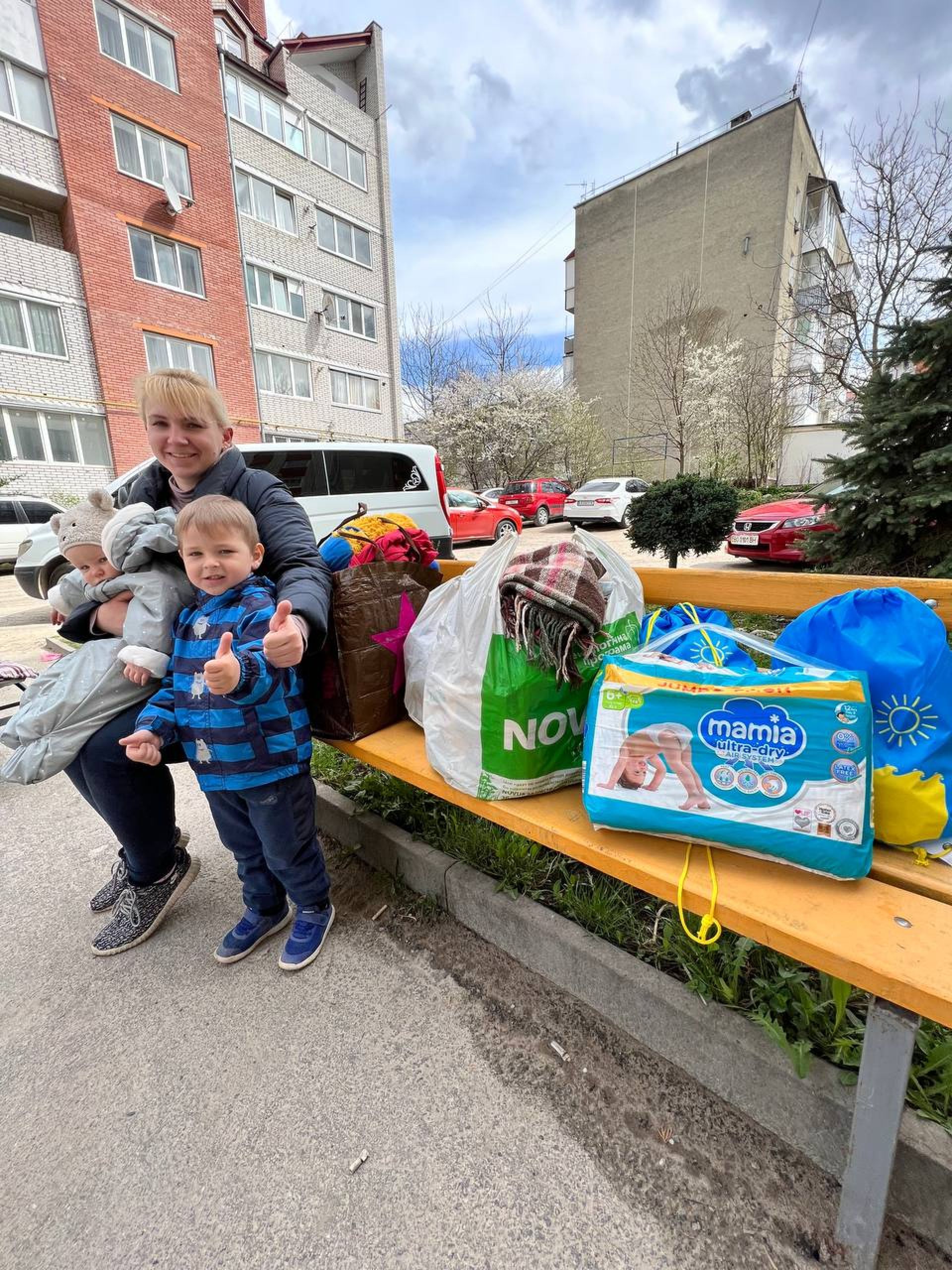 Їй було незручно, адже думала, що заважатимуть іншим мешканцям прихистку. Я наполягала: «А з чим буде зручно?». Жінка сказала, що з ходунками. Зі своїх доньок я вже давно віддала, але закинула допис у соцмережі, й у той самий день моя подруга, яка зараз за кордоном, зв’язалась зі своїм чоловіком і привезли нам ходунки і навіть самокатик для дитинки.