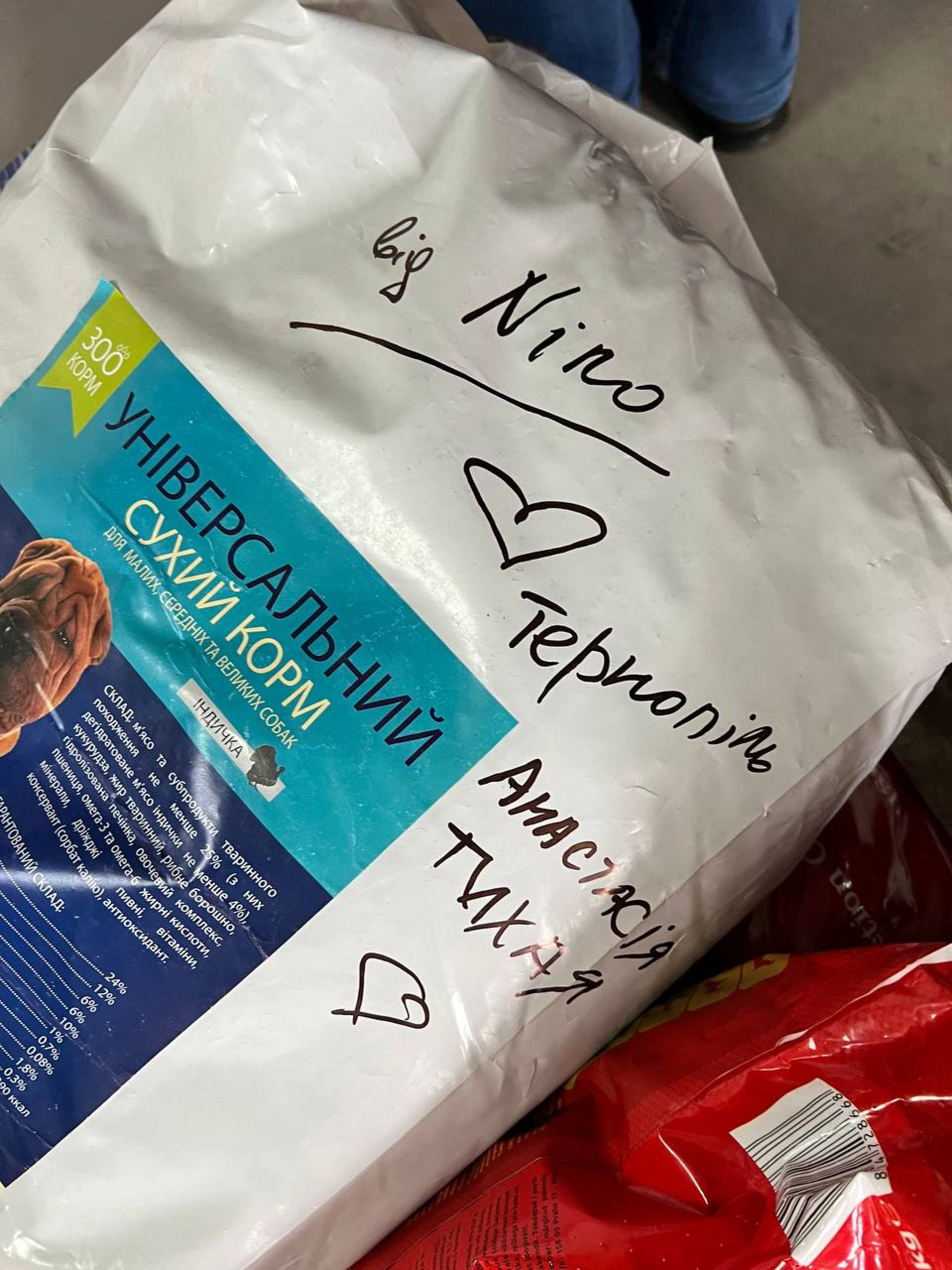 Ще маємо двох собак і п’ятеро котів. Плюс, у рідних разом з нами чотири пси живуть. Повірте, знаю, що це таке, коли вони голодні! Тварини не розуміють, що ти іноді не маєш для них харчів. Тому я вдячна тим, хто ділиться чим-небуть. Якось зв’язалася з товаришем, який збирав банки, аби передати колезі, котра готує тушонки на фронт. Навзаєм він мав декілька мішків корму і поділився зі мною. Я знайшла контакти Анастасії Тихої, чиє фото облетіло пів світу, і передала їй корм.