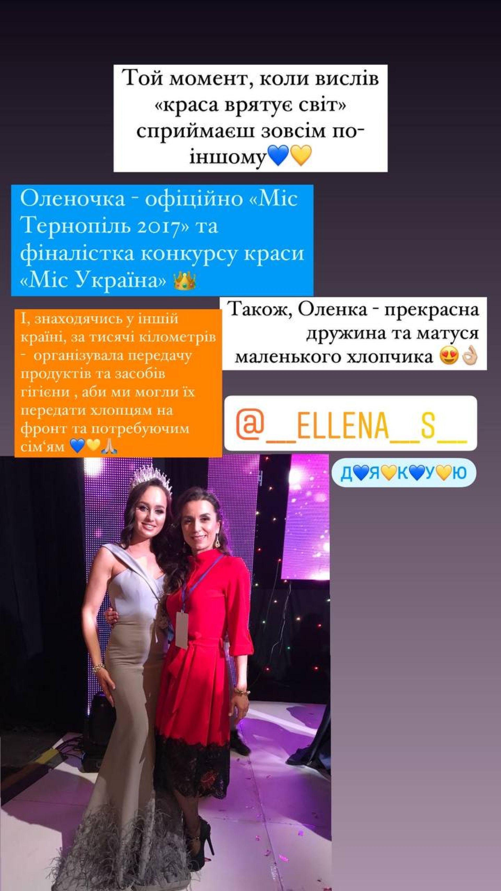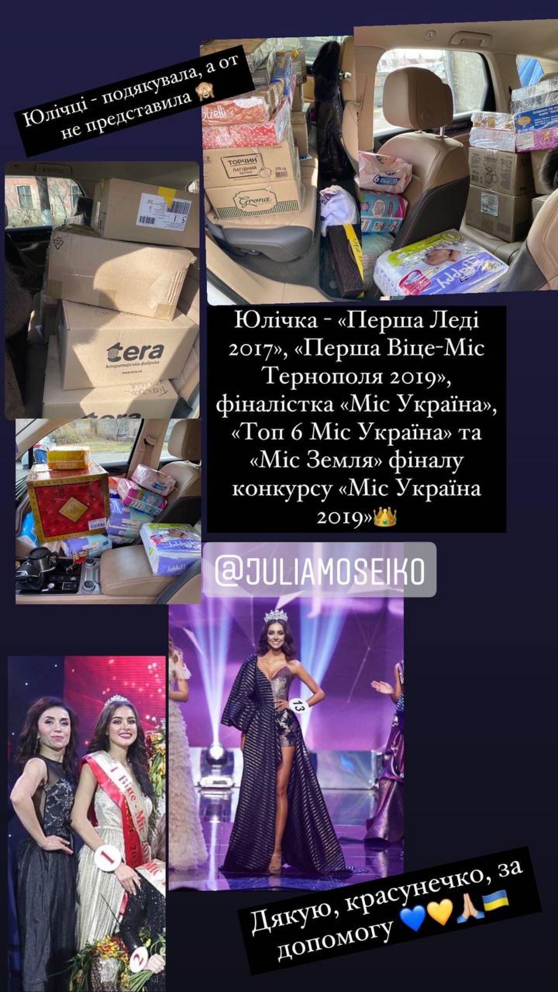 Наприклад, учасниця «Міс Тернопіль-2017», яка є фіналісткою «Міс Україна» і зараз мешкає за кордоном, надіслала нам допомогу з Англії. Дівчата, які дуже давно займалися у мене танцями, а тепер полишили цю справу і мають свої сім’ї, теж телефонували і доєднувались до нашої справи неодноразово. Учасниці конкурсів краси різних років допомагали при потребі. Я навіть писала якось: «Краса врятує світ!».