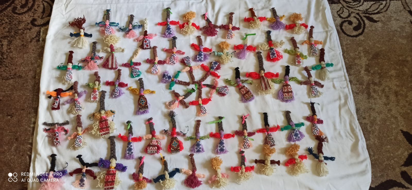 – Раніше мотанки виготовляли виключно з ниток, але українська культура розвивається і згодом з’явилися ще й ляльки зі спідничками, сорочками. Вони красиві, звичайно ж, і людям подобаються. Але я вирішила, що мої мотанки матимуть вигляд як найдавніші українські. Обираю різні кольори ниток, врізаю з картону такий каркас і починаю їх намотувати. Я люблю поєднувати кольори. Буває таке, що у мене є білі ниточки і туди додаю якусь жовтеньку, трохи блакитної. А потім я роблю їм такі фартушки в українському стилі, щоб всі розуміли, що це наші україночки. Переважно роблю дівчаток, – розкриває власні секрети жінка.